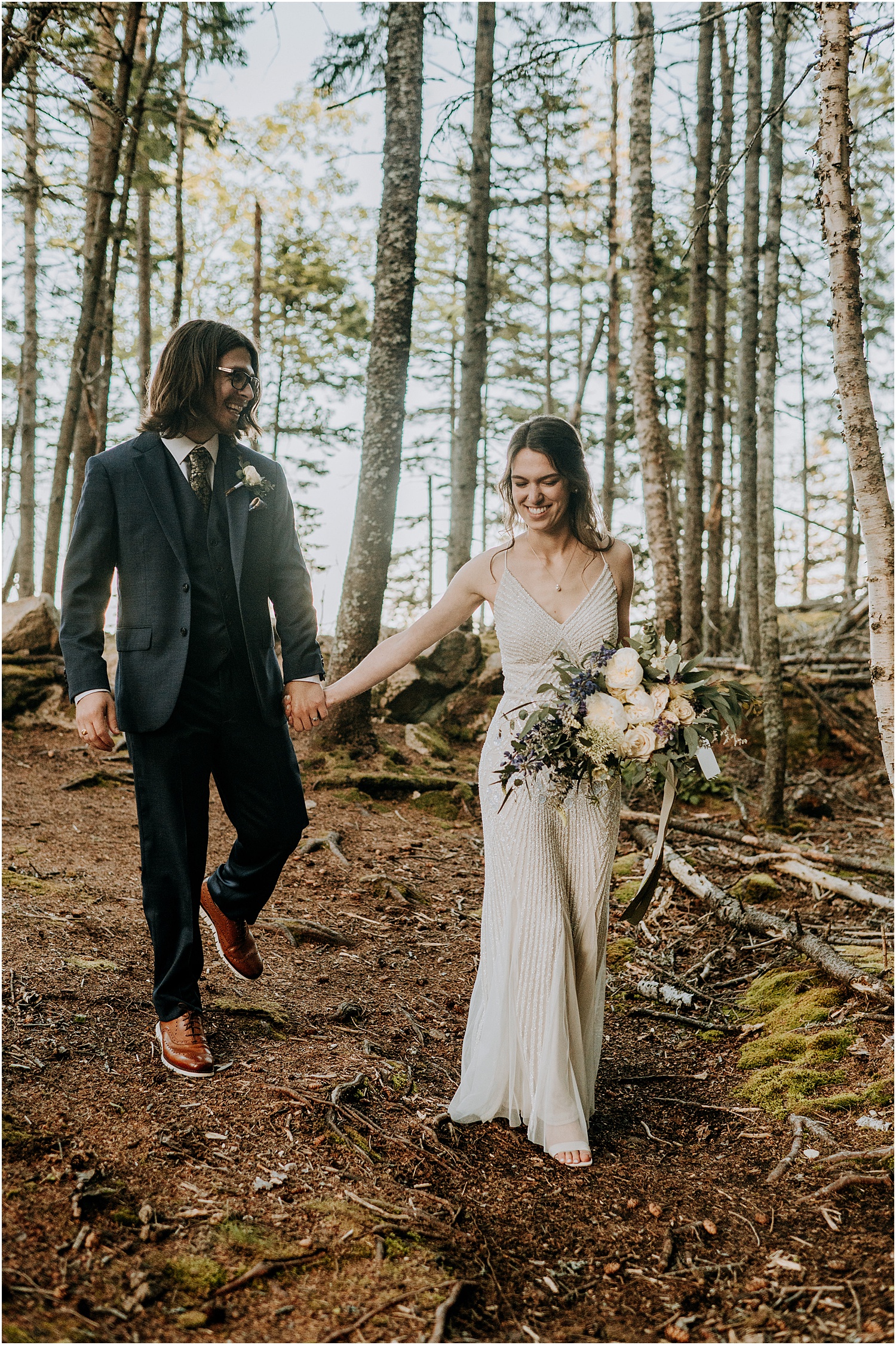 Maine elopements, especially those that take place in Acadia National Park, are 100% my jam. You likely know that by now, but every time I shoot one, I am reminded of how much I love small weddings in national parks. In Brandon and Sarah’s inquiry, Brandon and I connected on our love for metal bands. It was at that moment I knew we were going to hit it off. We worked on planning their elopement in Acadia National Park from afar, because they live in Wisconsin, but not to worry! Every couple that I work with, especially when planning in Acadia, receives lots of planning assistance. Including a wedding guide to help with EVERYTHING: lighting, timelines, family photos, recommended vendors, and more!