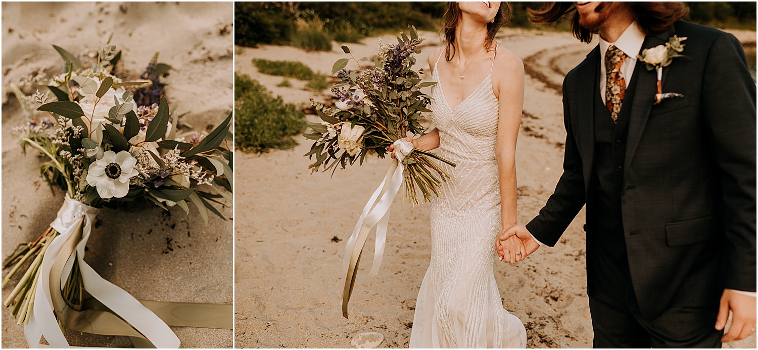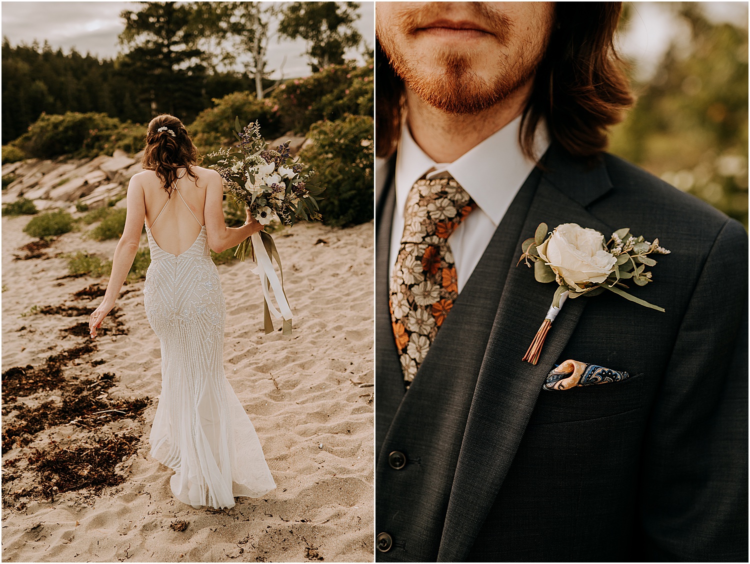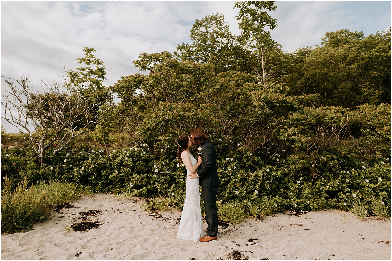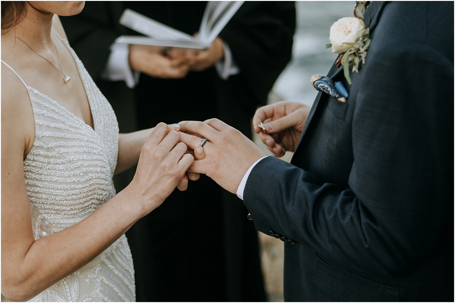 We headed into the park, and as I have always found in Acadia, you have to expect changes and obstacles. On that day, these came in the form of climbers on Otter Cliff. We decided that wasn’t the best spot for the wedding, and so we shifted gears and headed to another spot on the trail. But it was still absolutely stunning, wait until you see! My favorite Bar Harbor and Acadia Wedding Officiant, Adam Babish, helped the couple with a sand ceremony. They used grains of sand from right there in Acadia. This was such a special ritual and memento that they’ll have forever.