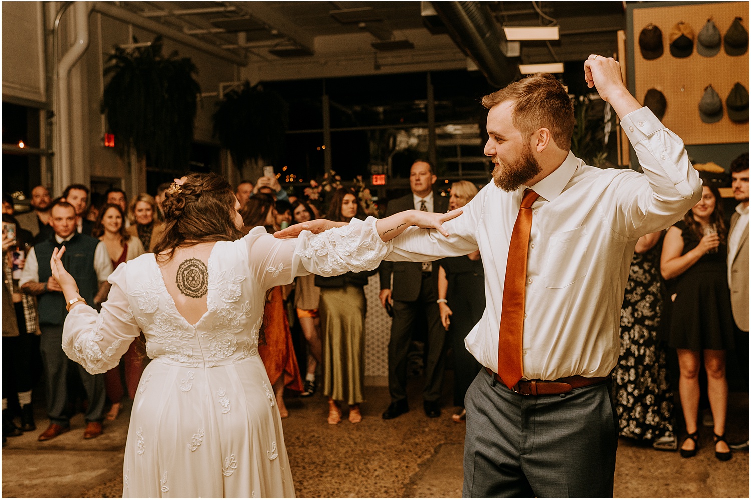 Allie and Dylan officially got married on a mountaintop last fall. But they decided to do something extra special for their one year anniversary. Instead of being out in nature, they chose to celebrate their marriage with a funky dance party at Austin Street Brewing, surrounded by family and friends.