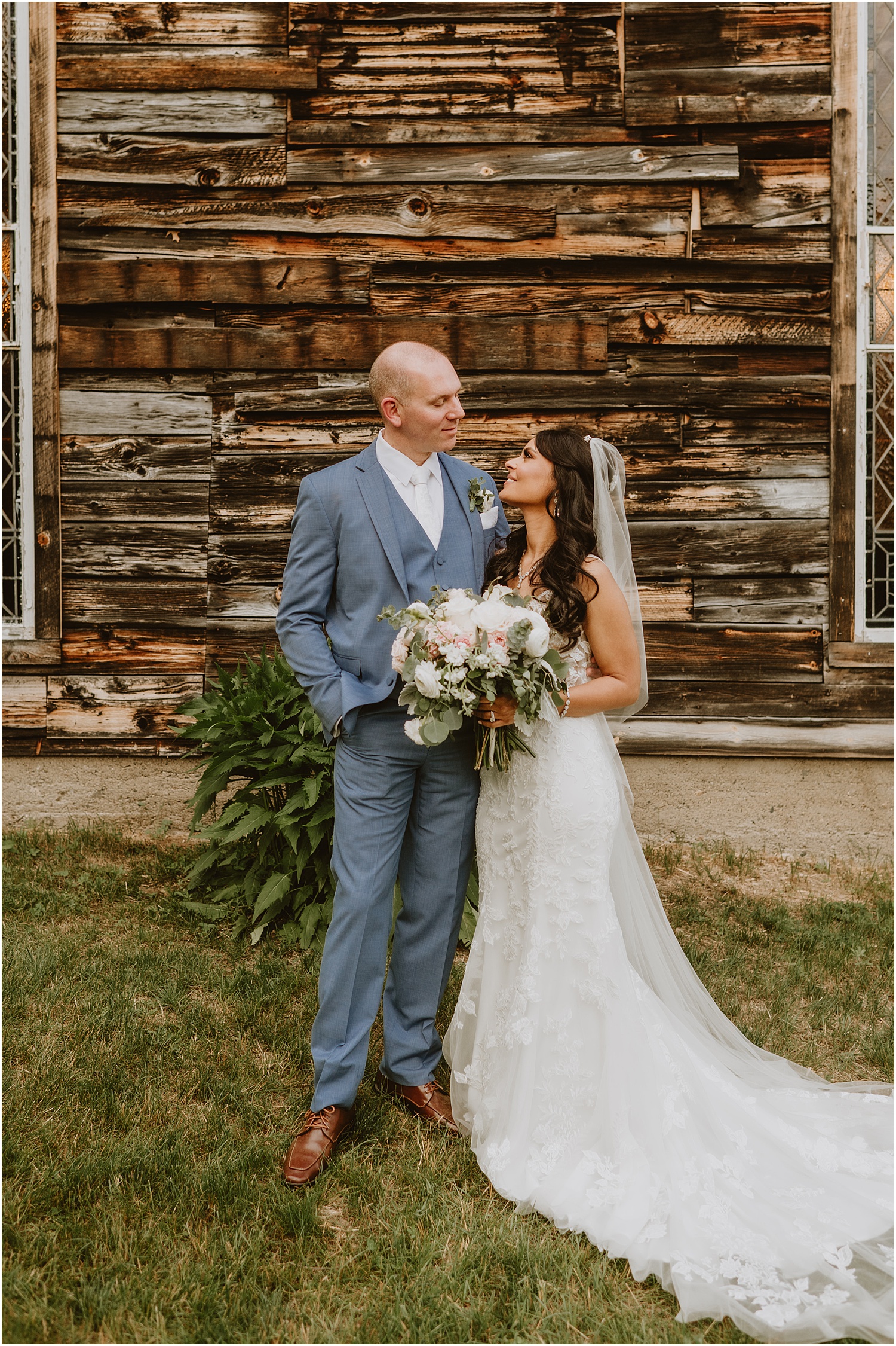Brittany + Mark were joined by their closest family and friends on a sunny day in June. The couple chose to infuse light and natural colors into their day, the perfect complement to their rustic venue.
