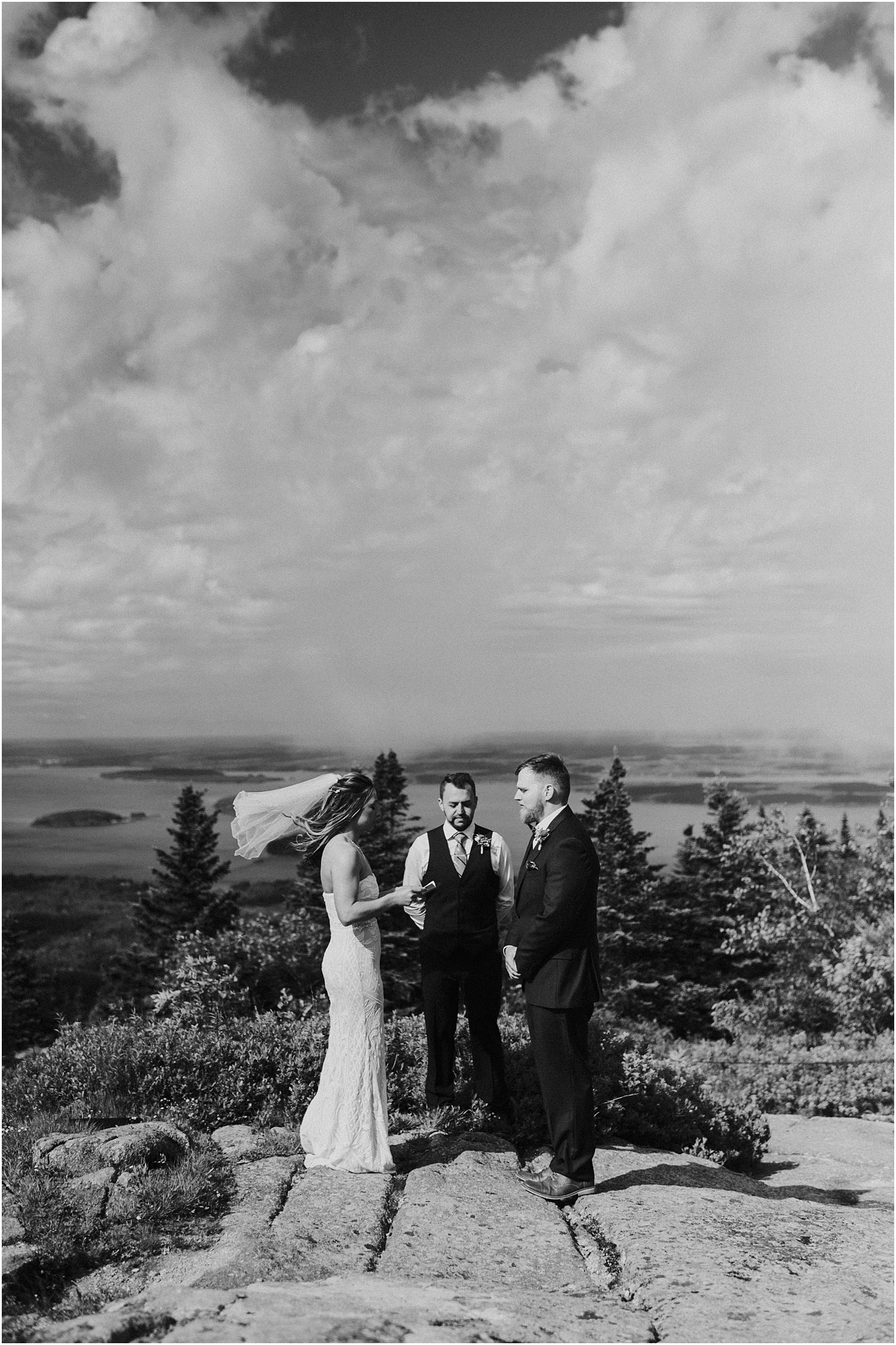 I’ll never tire of Acadia National Park elopements and weddings. Choosing to be in nature, on the ocean in Maine is the perfect way to get married in my opinion. This Cadillac Mountain elopement really is the epitome of views in Maine. Although it was windy as ever, we tucked ourselves into a little spot sheltered by trees. Kelcy + Nick shared the cutest vows, with their family surrounding them.