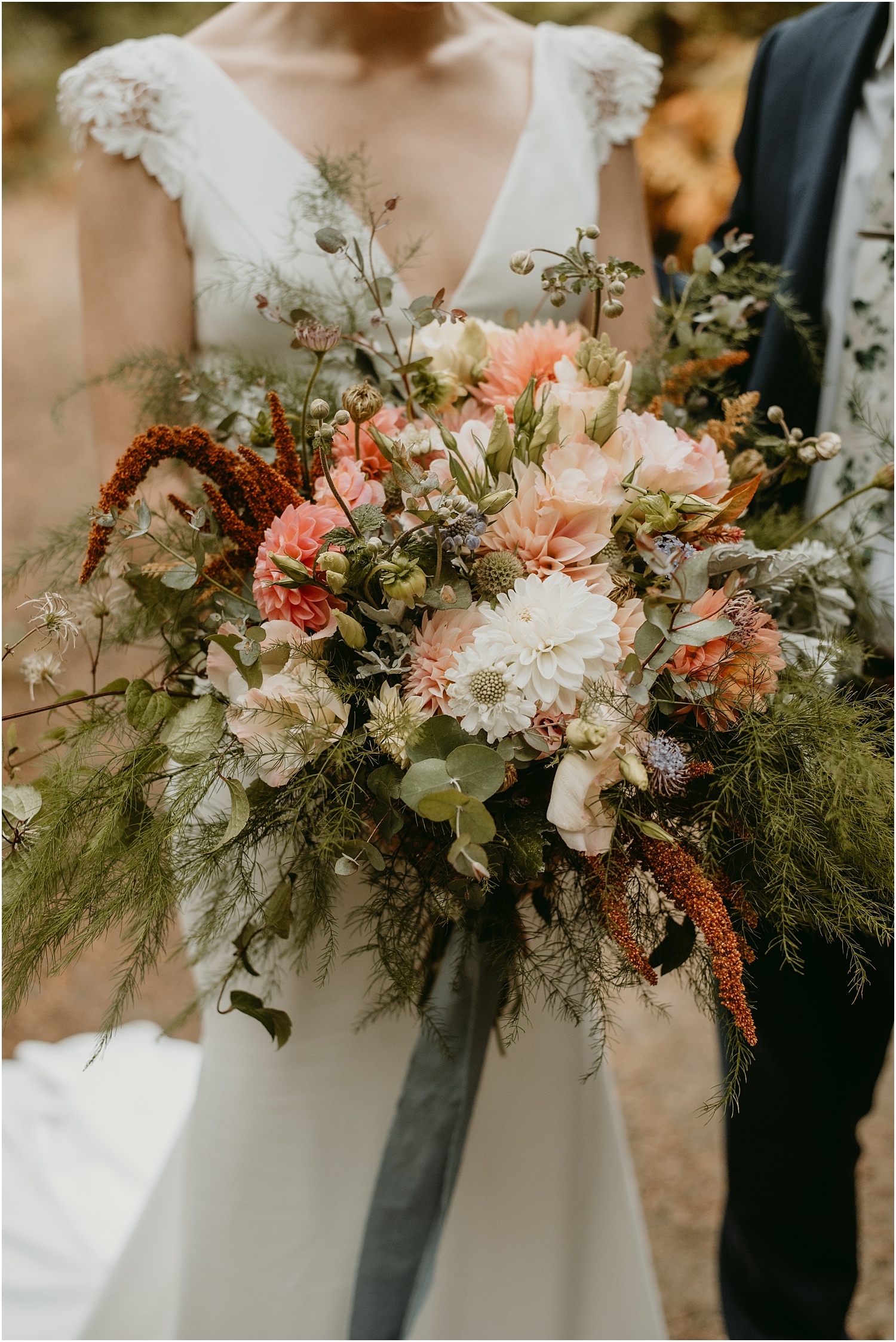 While their wedding may have been small, Caroline chose to invest in a huge bridal bouquet. This added warmth and color to their wedding portraits. Similarly, I am a huge advocate for splurging on the things that matter to you on your wedding day. For me, it’s gotta be florals. Not only does a bouquet give you something to do with your hands, but it also completely elevates your photos.