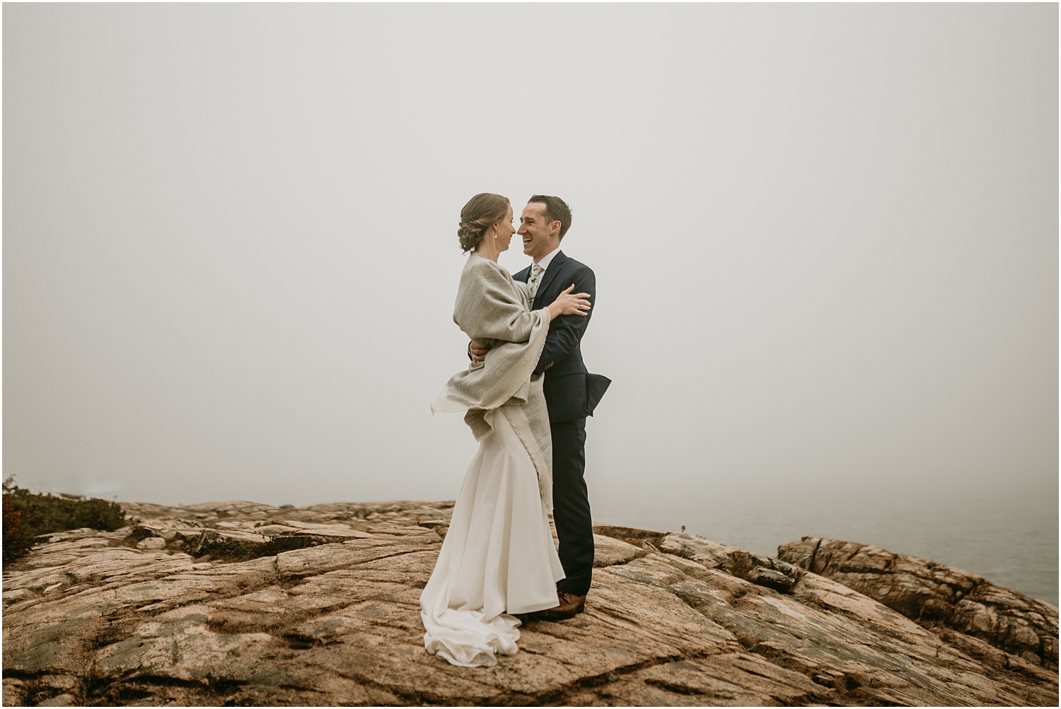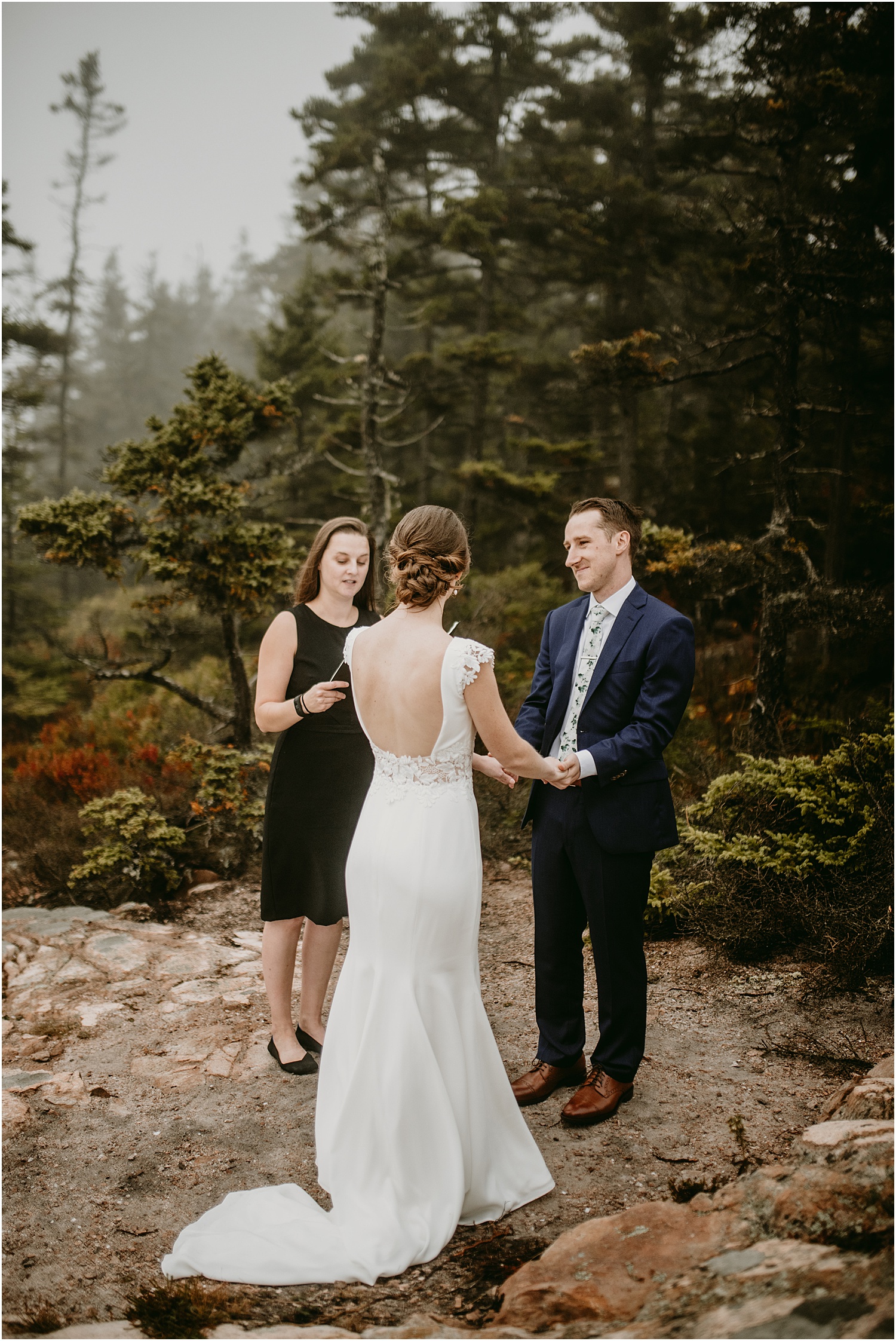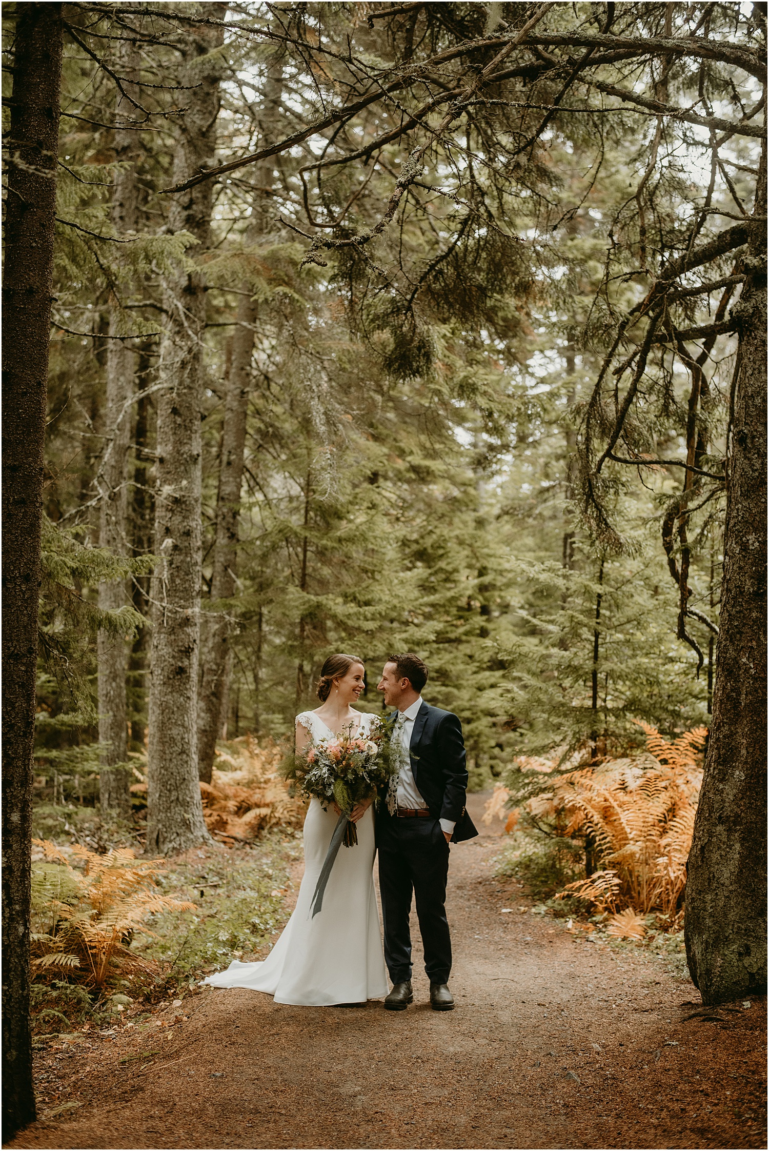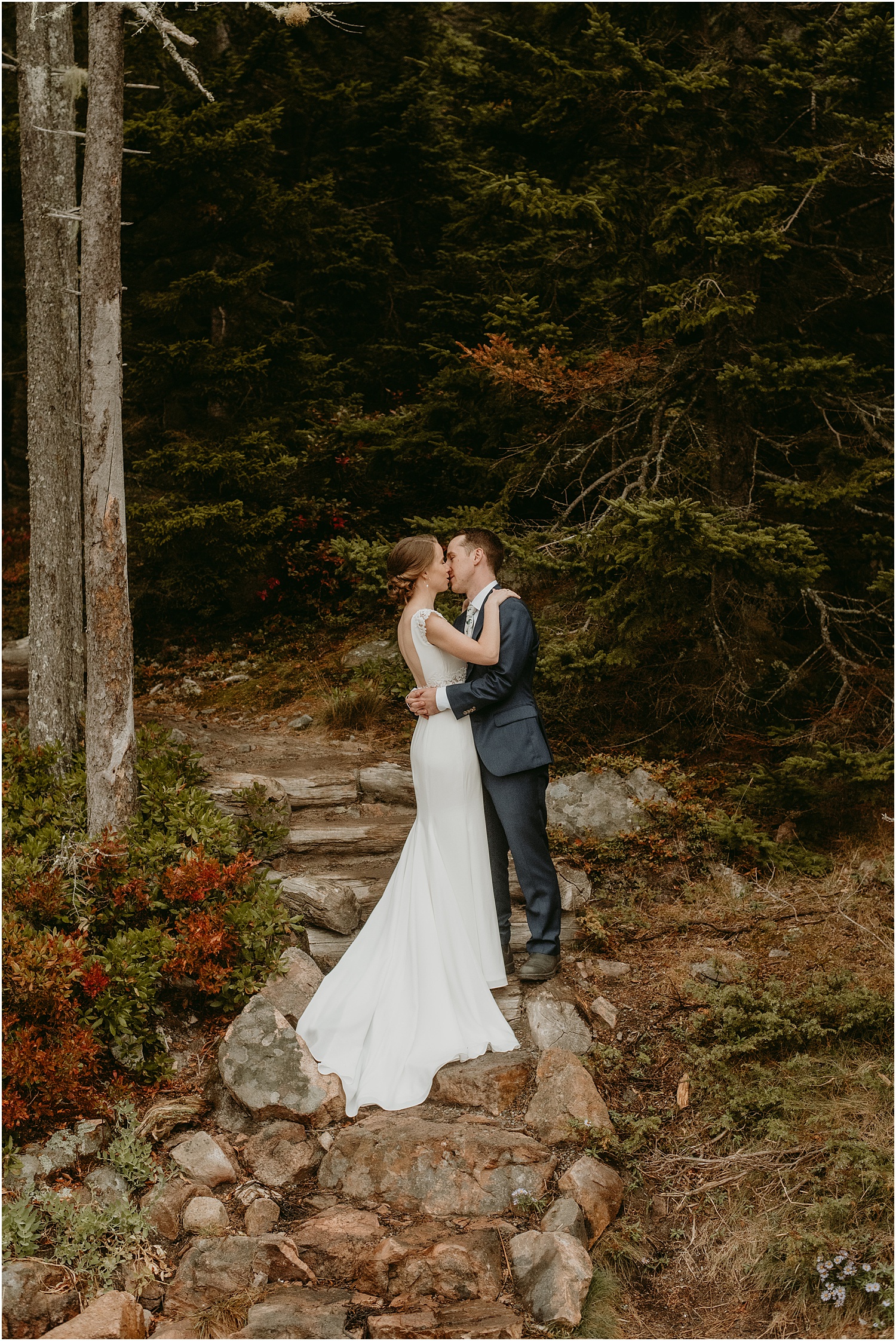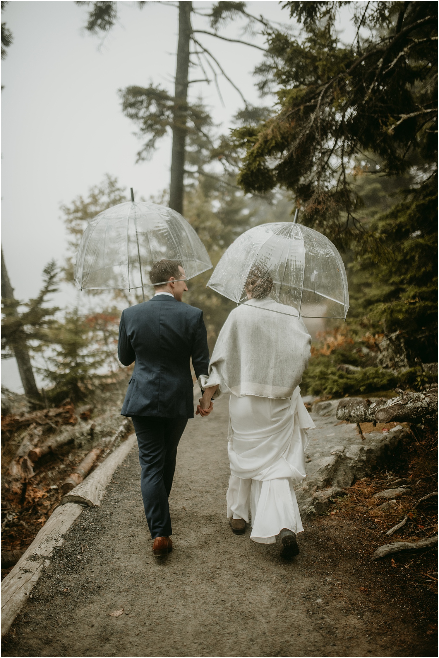 Overall, the couple made some brilliant adjustments, like wearing muck boots with their dress clothes instead of fancy shoes. Given we were on a slippery seaside trail in the rain, this was an excellent choice. Comfort over everything, even on a wedding day, I always say.