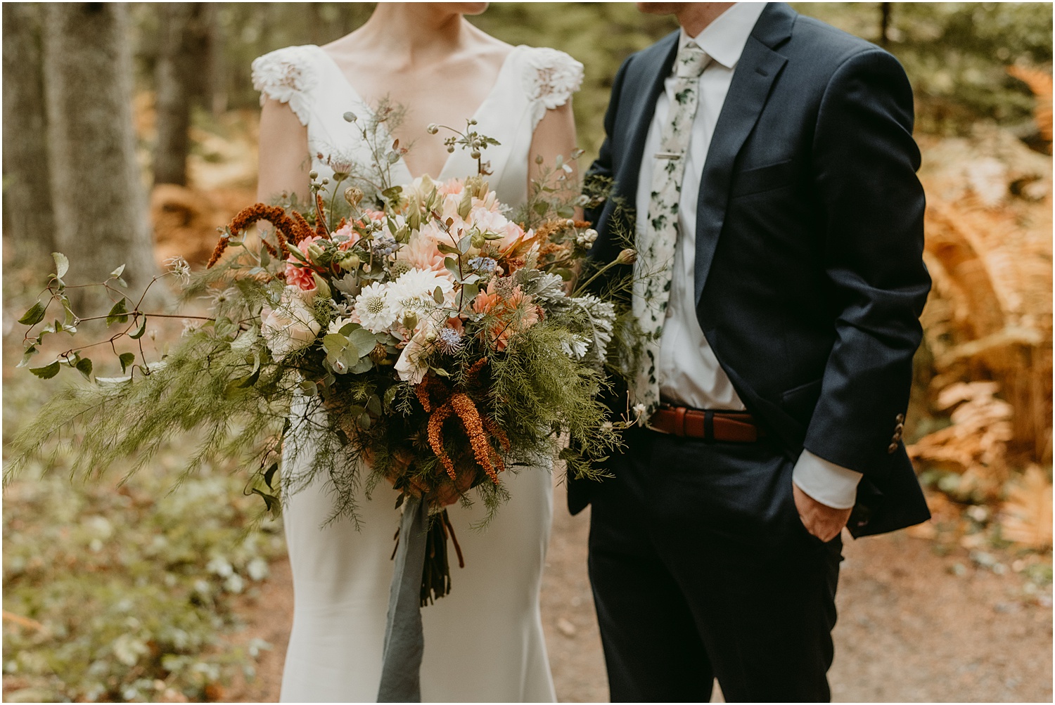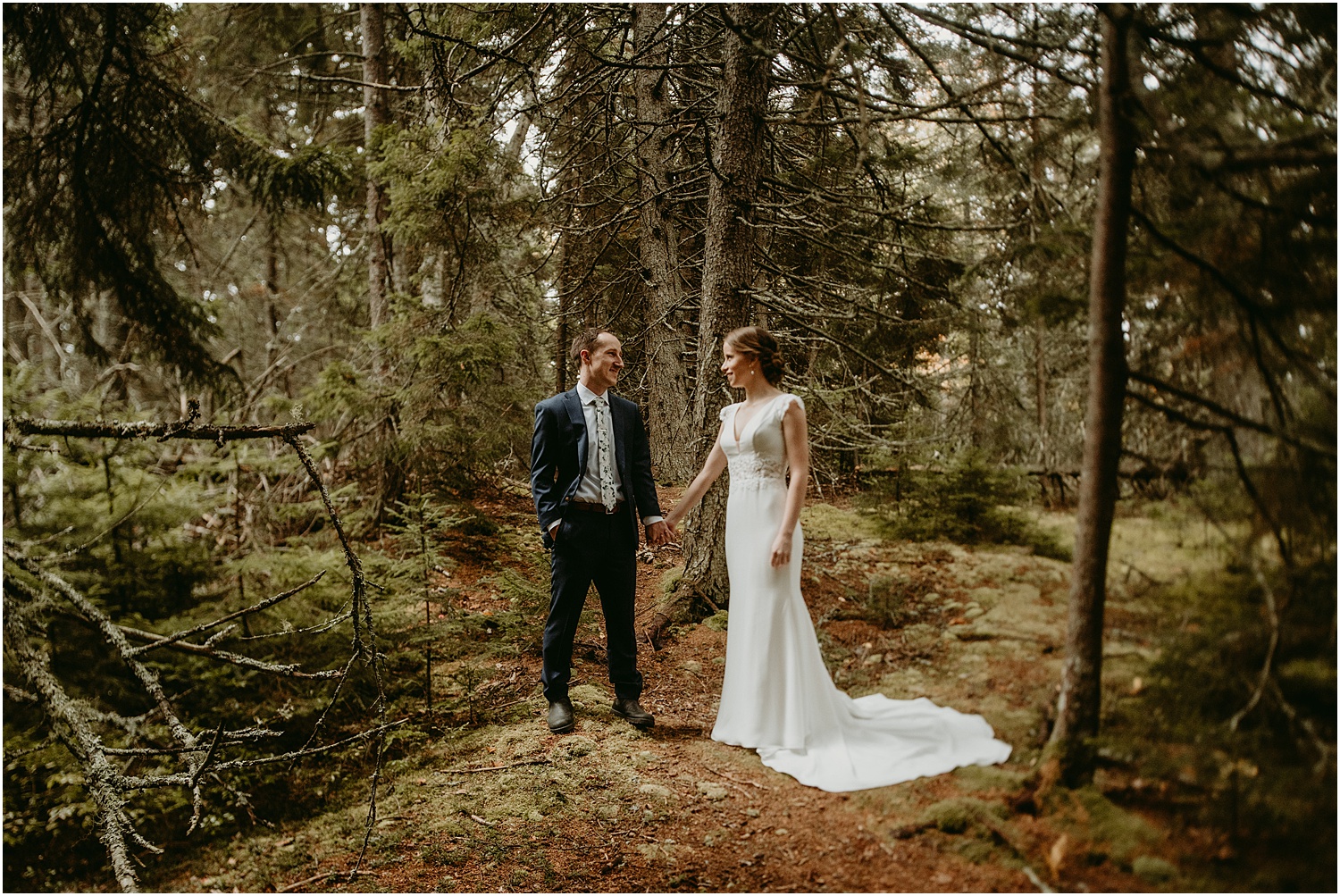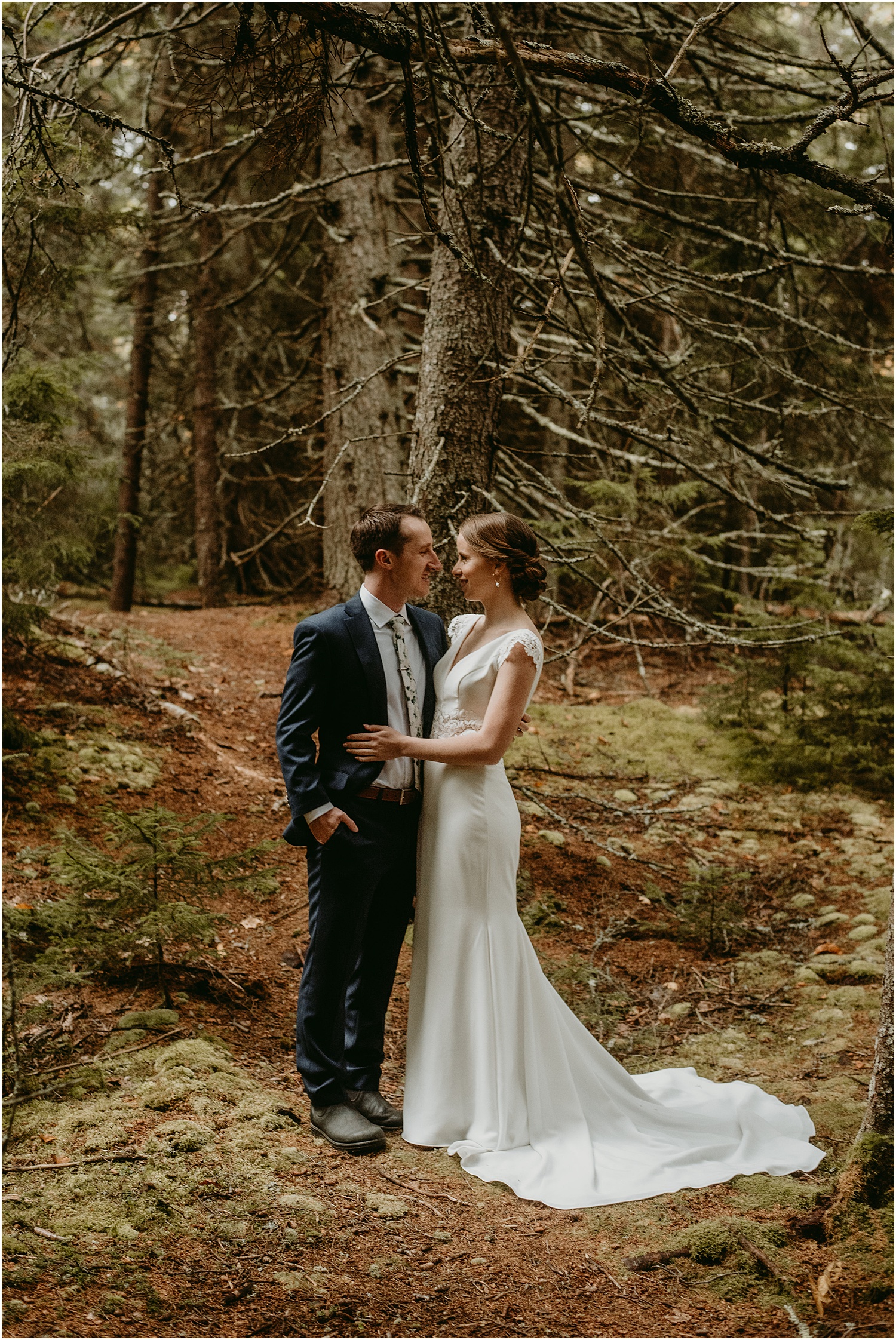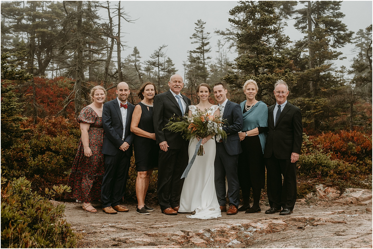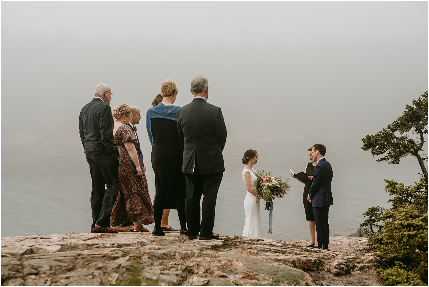 Overall, the couple made some brilliant adjustments, like wearing muck boots with their dress clothes instead of fancy shoes. Given we were on a slippery seaside trail in the rain, this was an excellent choice. Comfort over everything, even on a wedding day, I always say.
