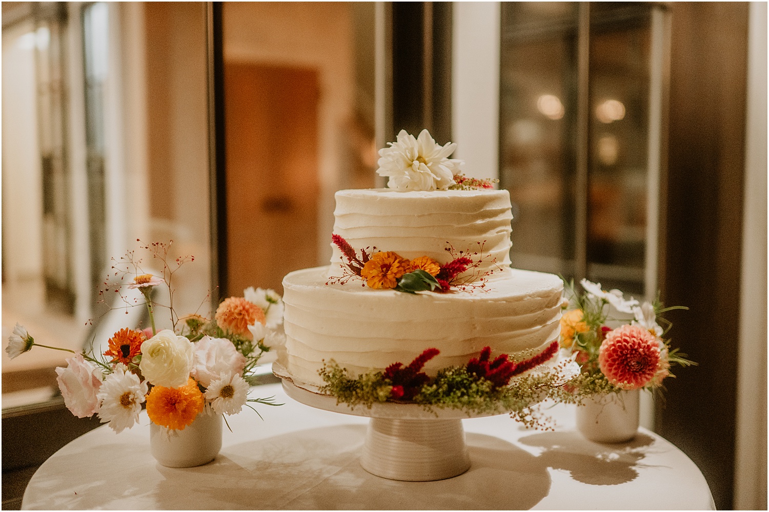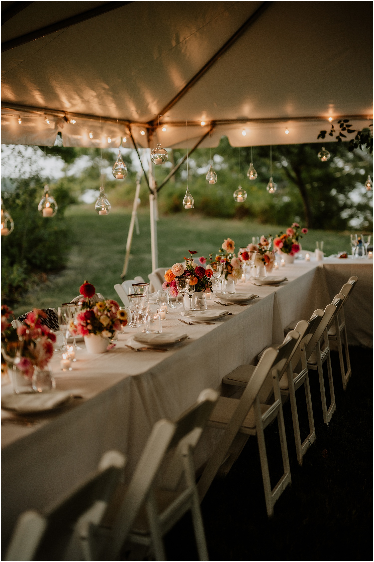 After a lovely and intimate ceremony, the guests and couple enjoyed food catered by local company Dandelion Catering. Later, they then danced the night away to songs by Pete Kilpatrick.