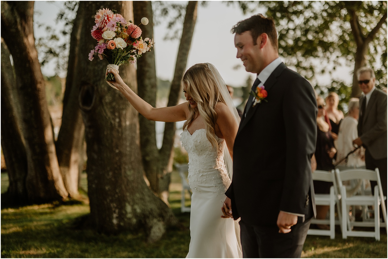 For Katie and Corey, choosing Maine for the location of their wedding was a meaningful and fitting decision. Although they currently live in Florida, both spent time in Maine during their childhood. They were able to host a hometown ceremony in Maine at a private residence on the coast, joined by close friends and family for a beautiful September celebration.