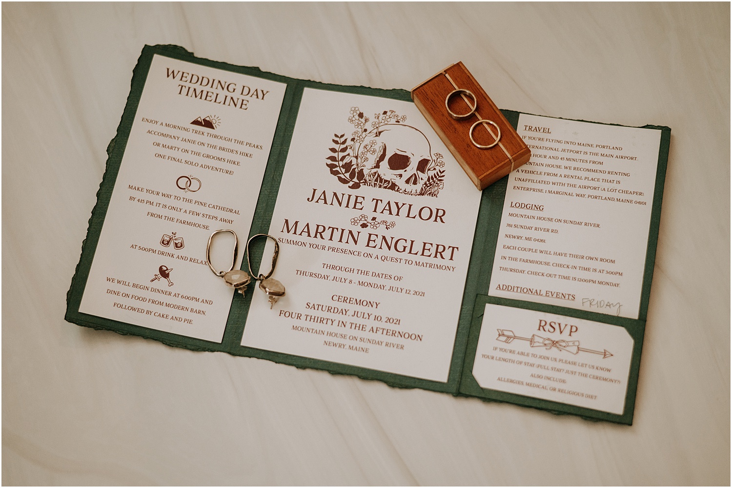 Janie & Marty were joined by their closest friends for their Mountain House on Sunday River wedding this summer. “Your presence is summoned on a quest to matrimony…” was how their invitation suite began, and so I knew this was going to be a fun one!
