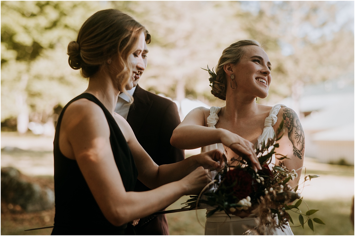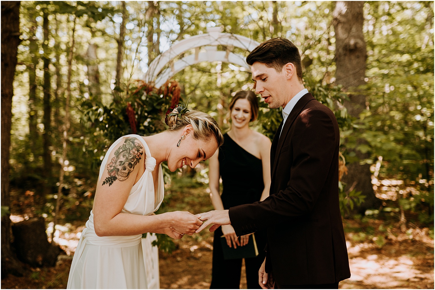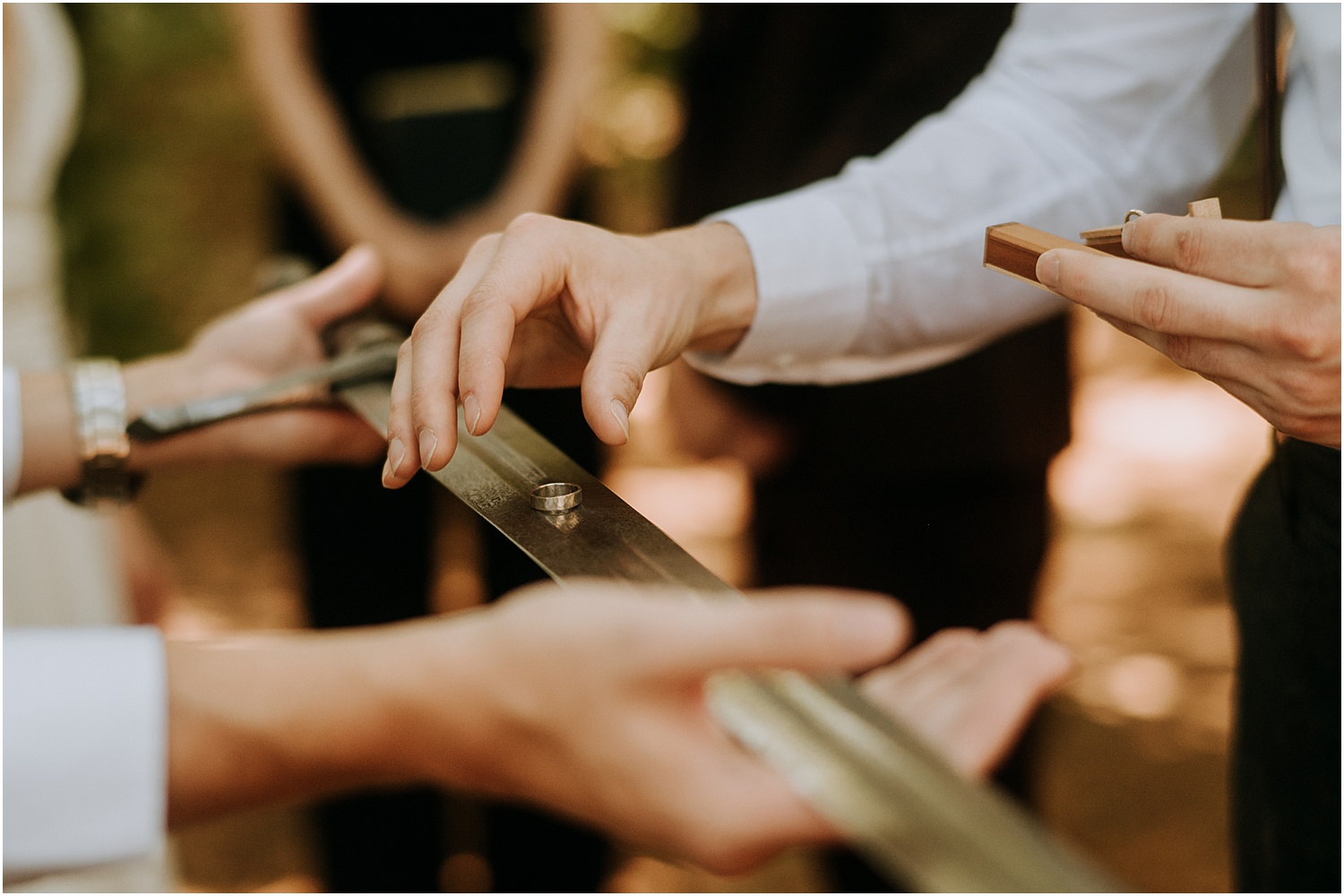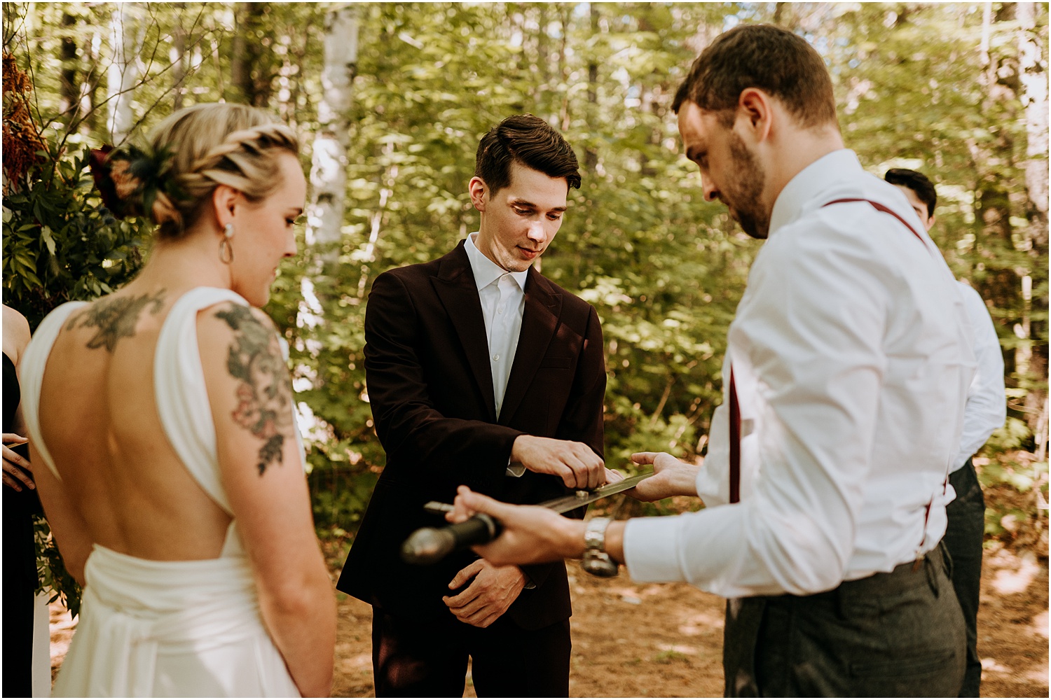 The ceremony included wedding bands that they created themselves at a workshop and a sword crafted just for the wedding, which was forged to replicate Aragorn’s sword in Lord of the rings. I know, I know, the coolest.