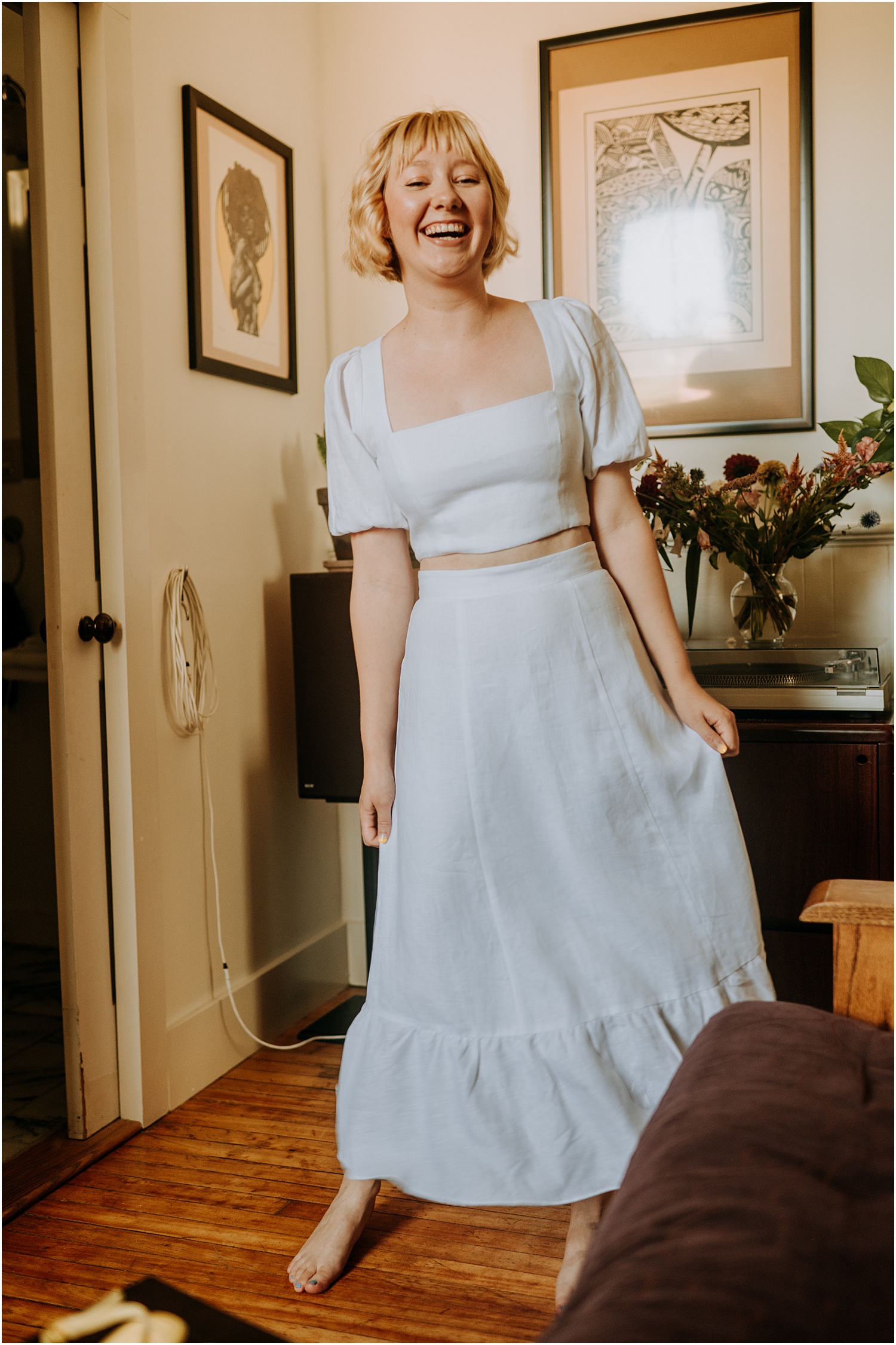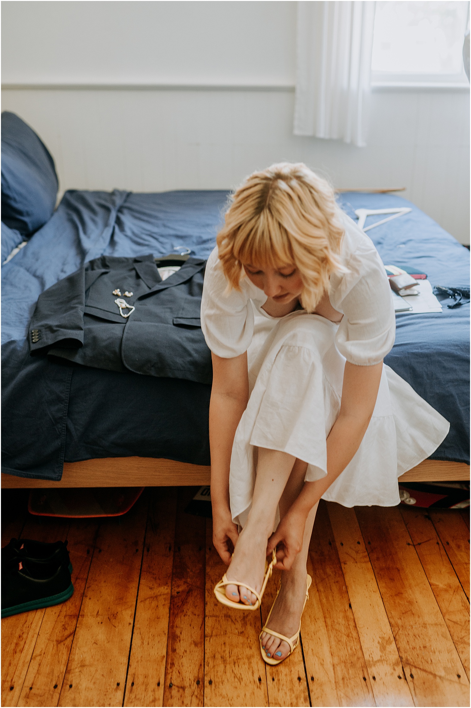 On the morning of their wedding, I swung by the couples’ apartment to photograph them as they got ready together. This is one of my favorite things ever. I mean who better to calm your nerves and spend time with right before your wedding than the person you’re marrying?! As they brushed their teeth and inspected their shoes, they were laughing and playing around, giggling with one another.