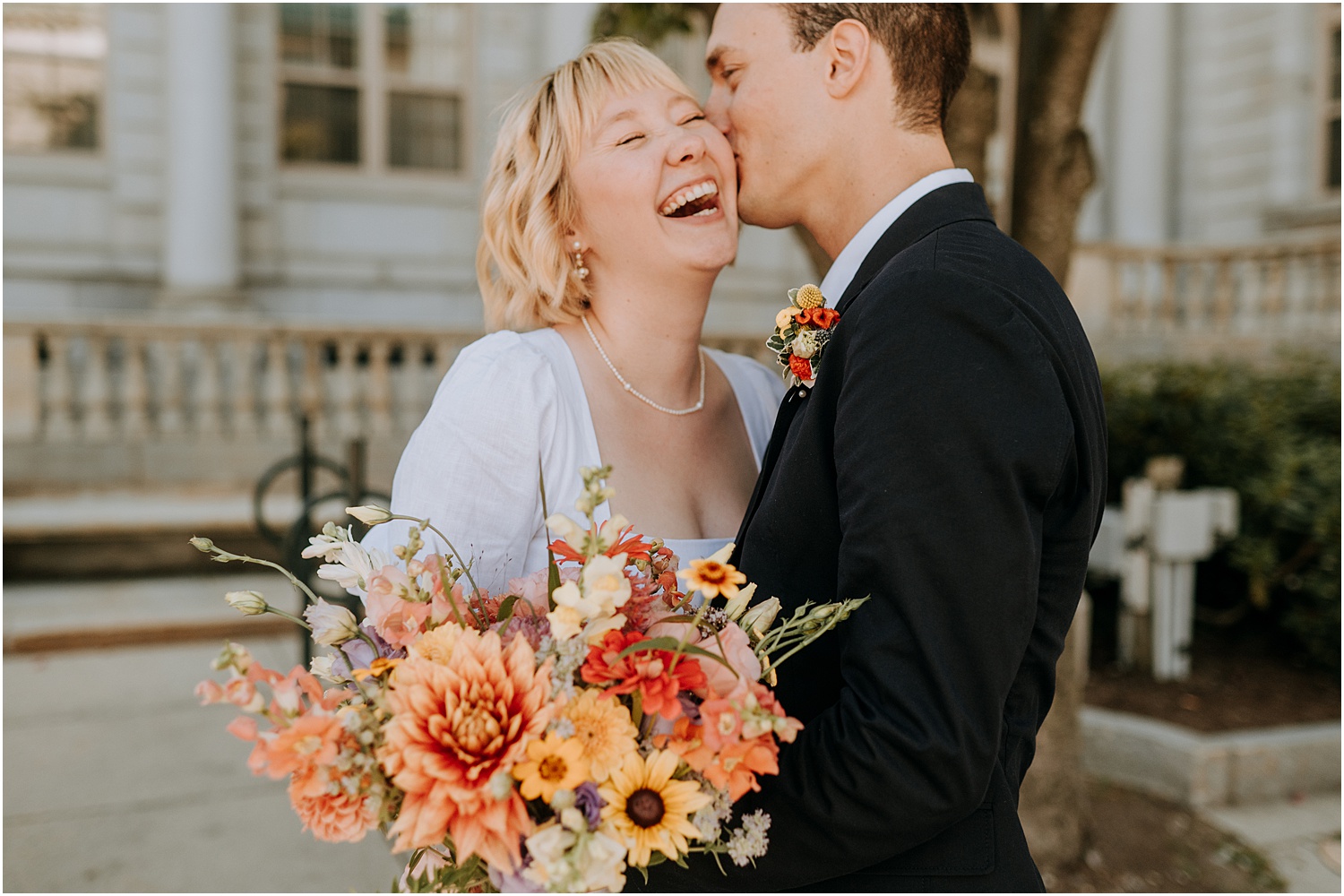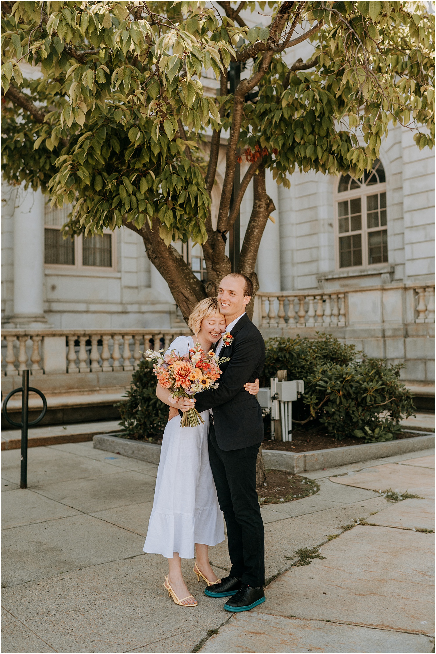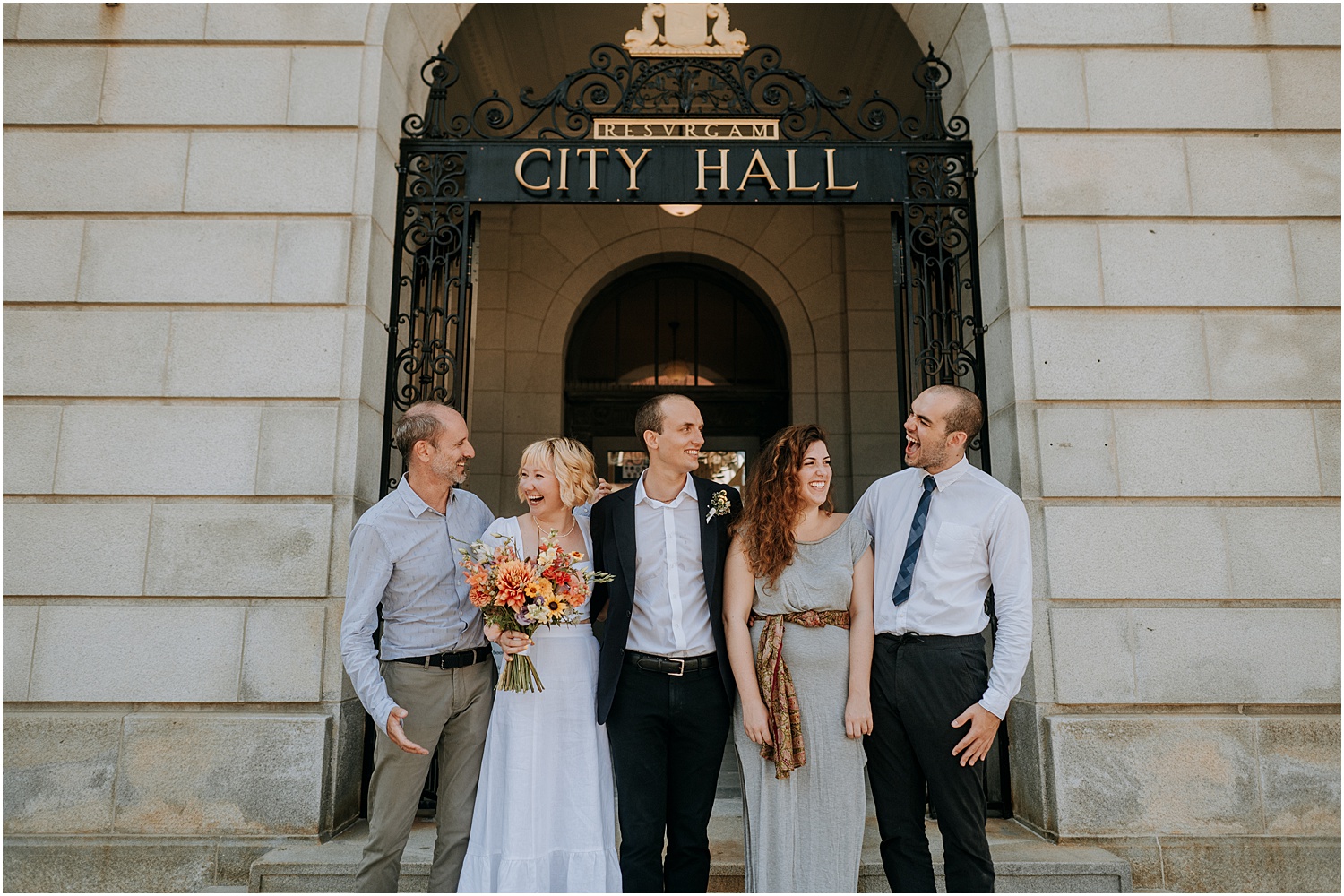 Alessandra and Arthur are very good friends of mine. So when they asked me to photograph their elopement ceremony at Portland City hall, I was absolutely honored. The ceremony took place at the end of the summer in 2021, which made the little wedding a magical miracle in of itself given that we were still very much in the peak of the pandemic.