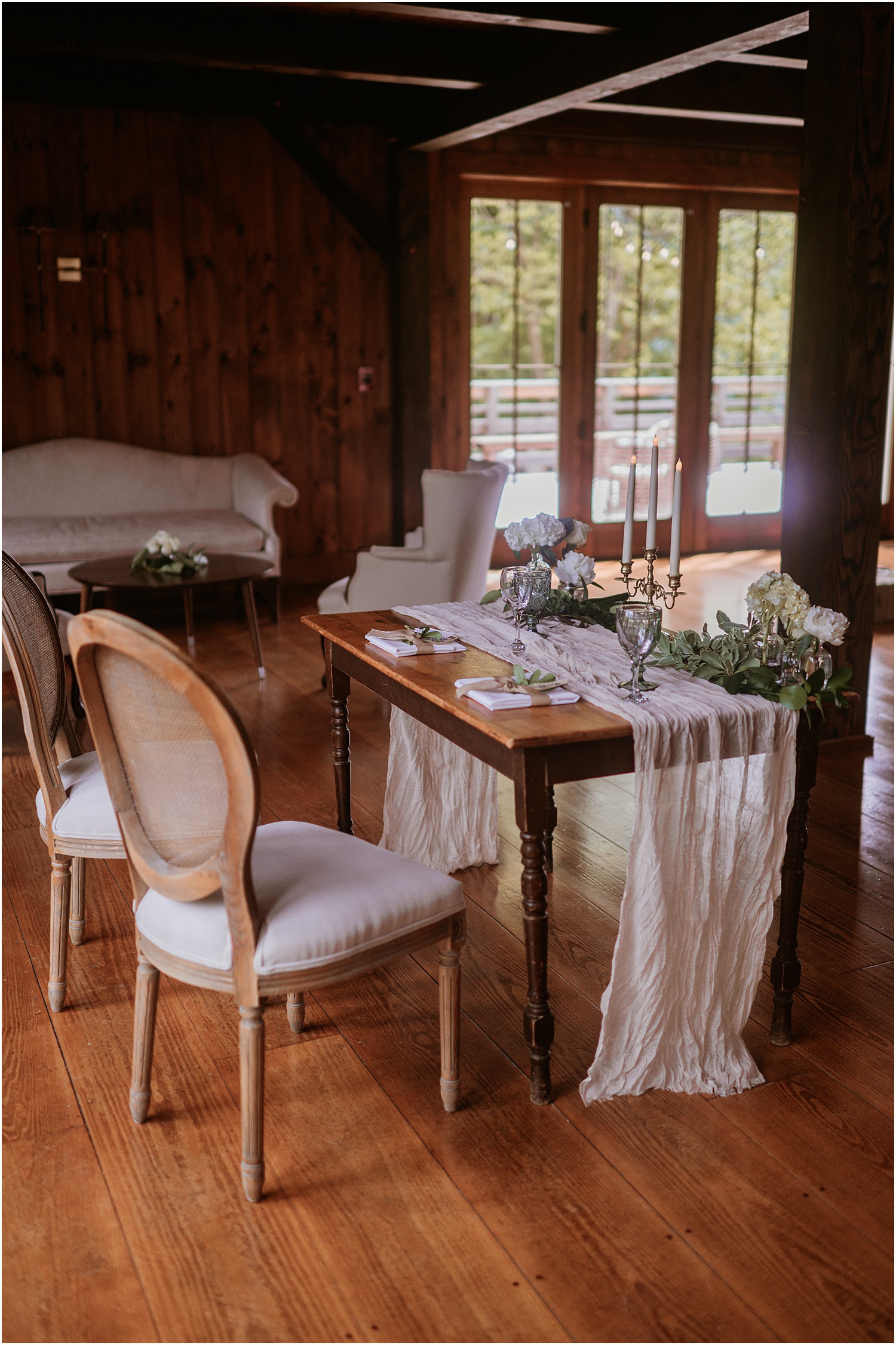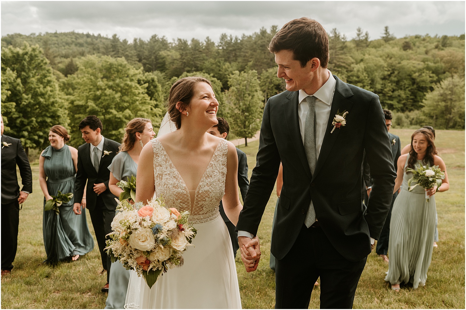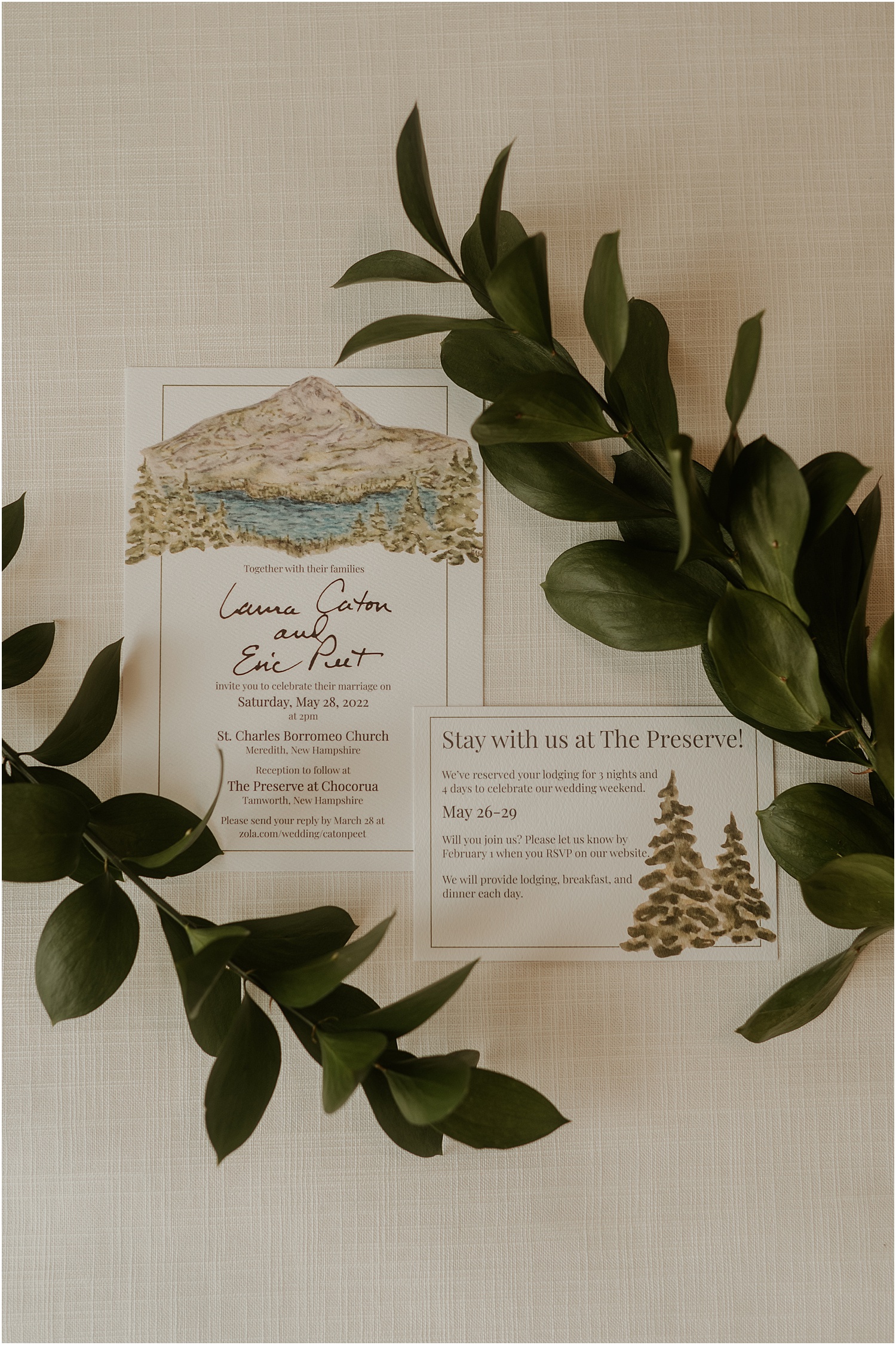 The lovely Eric and Laura, met in college on the rowing team. As big fans of outdoor adventures and as two people who spent summers in New England surrounded by lakes and mountains, The Preserve at Chocorua, a beautiful mountain getaway in New Hampshire, was the perfect place to celebrate their wedding.Â
