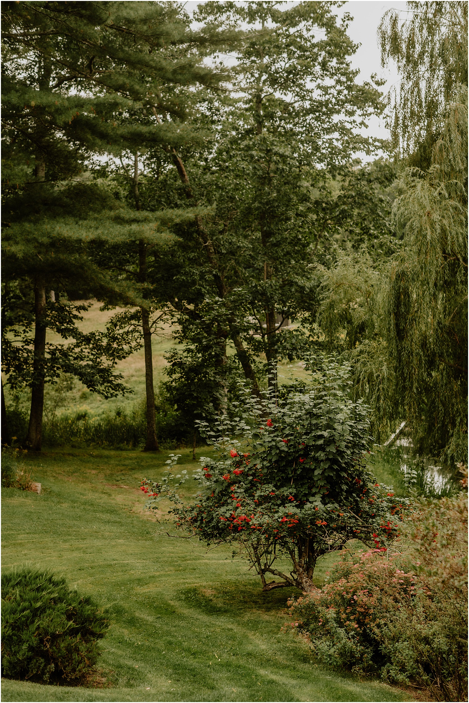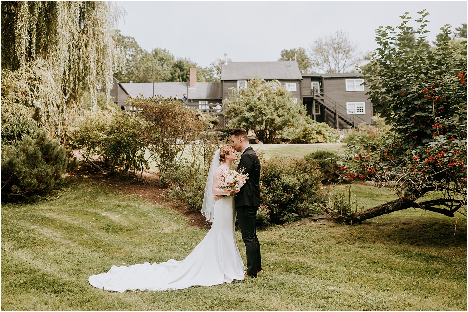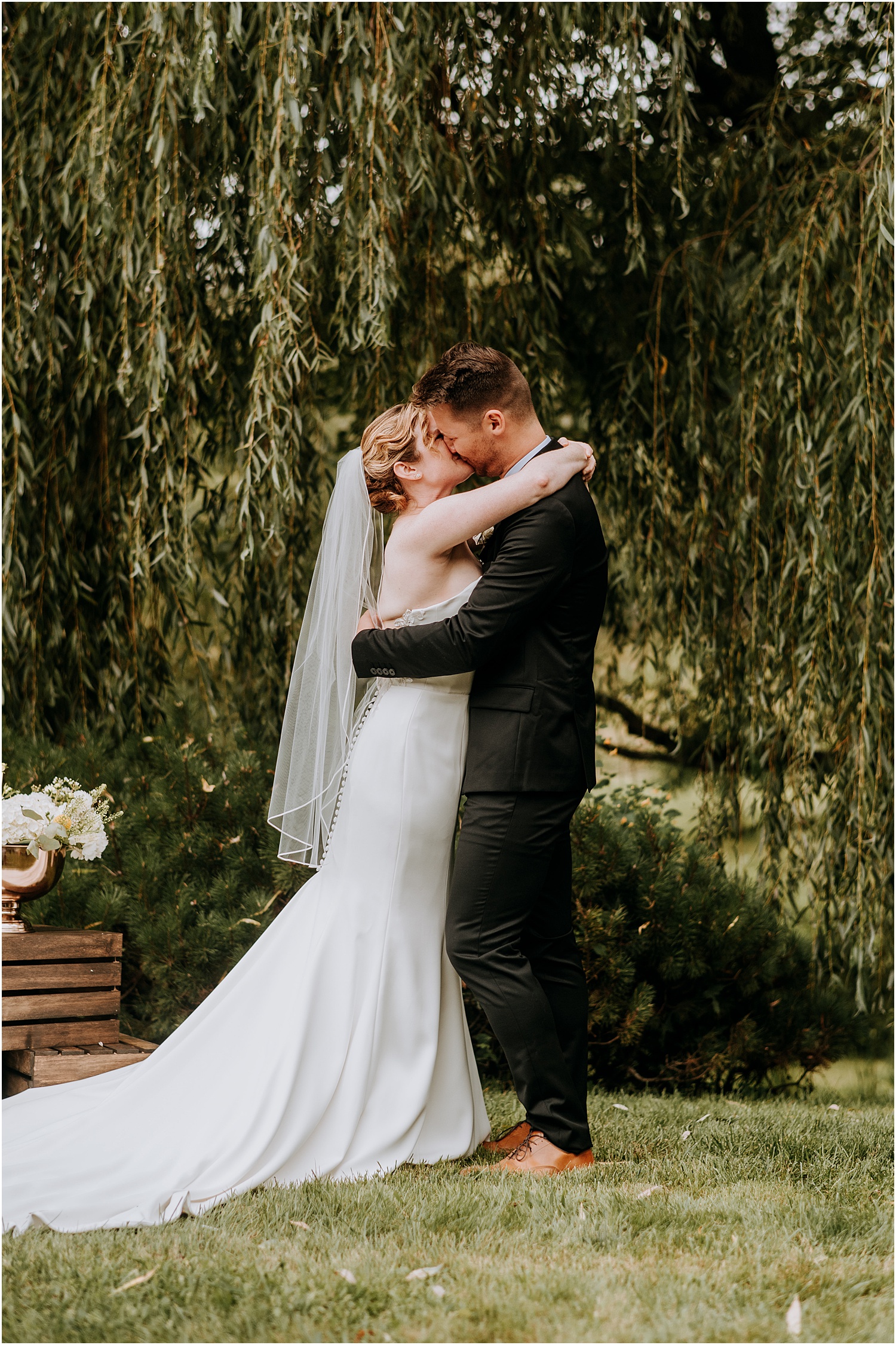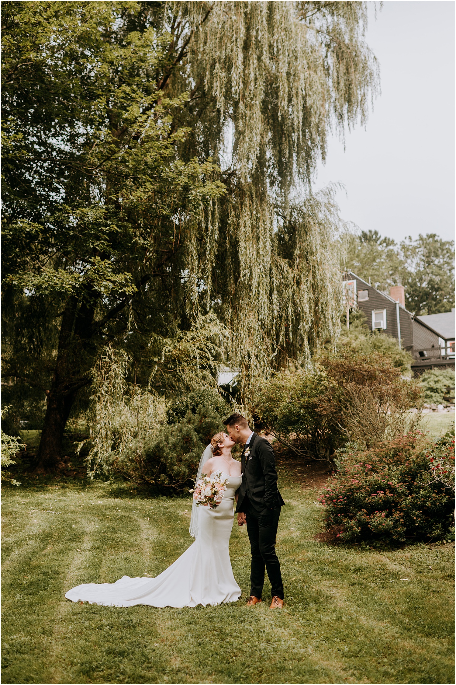 Jordan and James were married on the back lawn under a gorgeous willow tree. The ceremony location had beautiful views of the Squire Tarbox Inn’s 12 acres. The grounds were fully lush and green, which made them the perfect backdrop for pictures. After the ceremony, we set out to take more pictures of the newlyweds. There were so many beautiful spots for photos, and with all of the variety, we didn’t even have to leave the grounds.