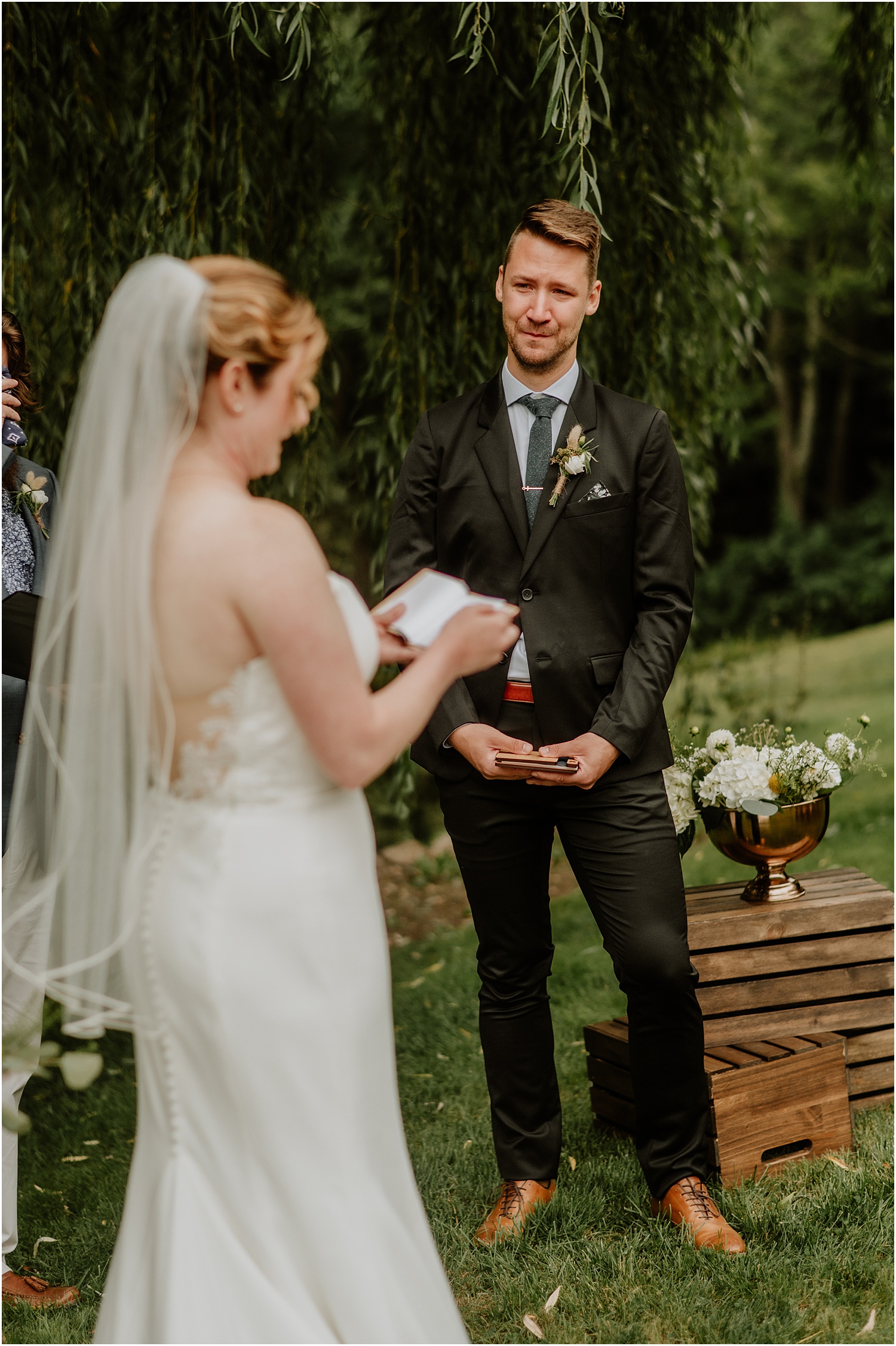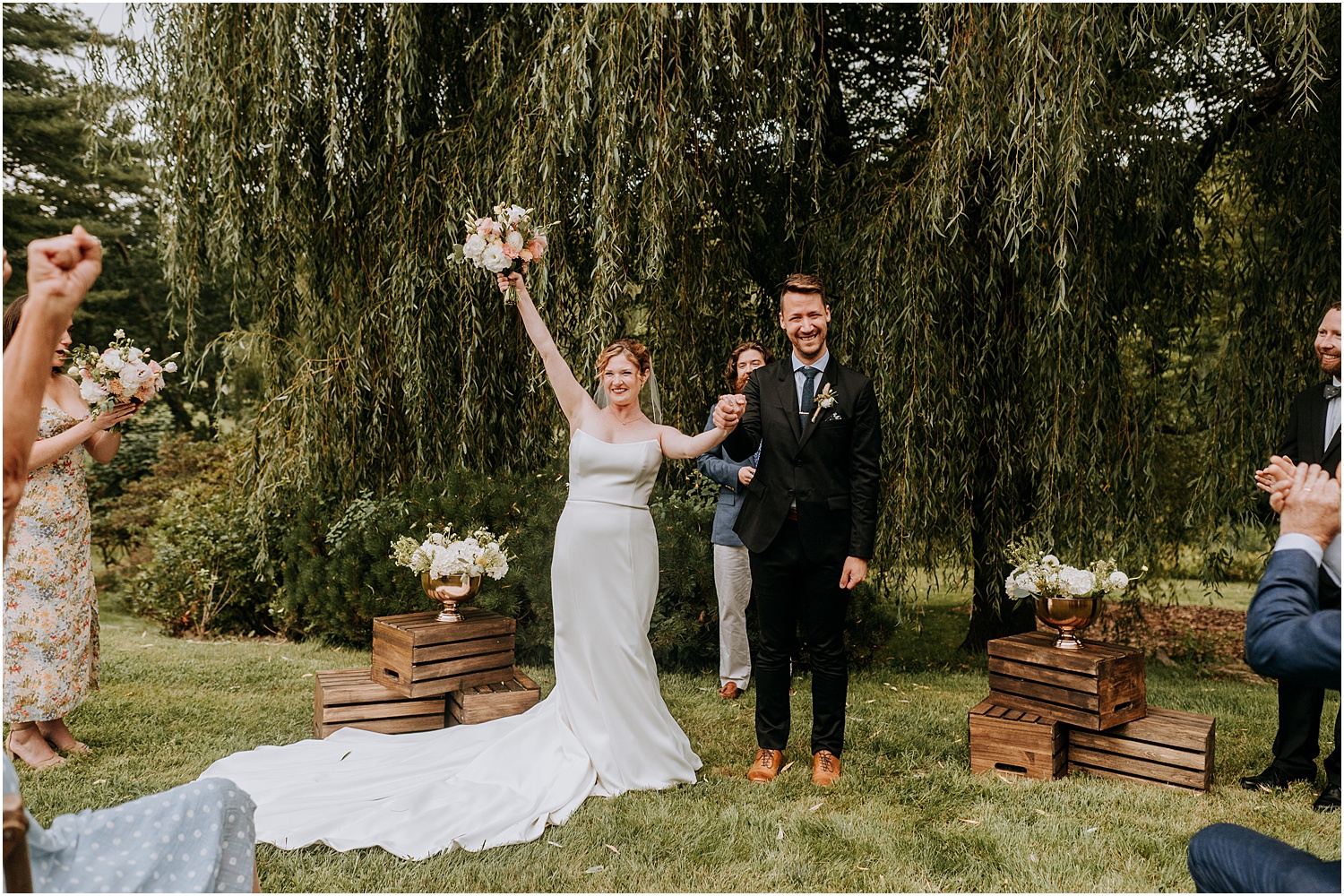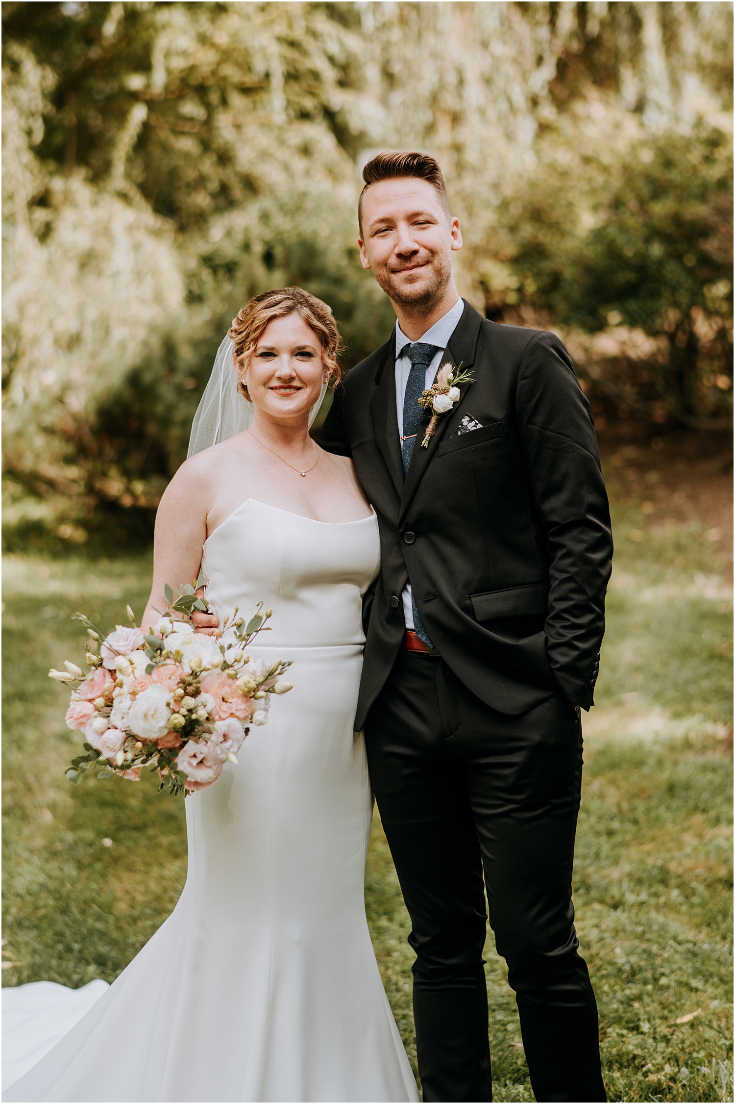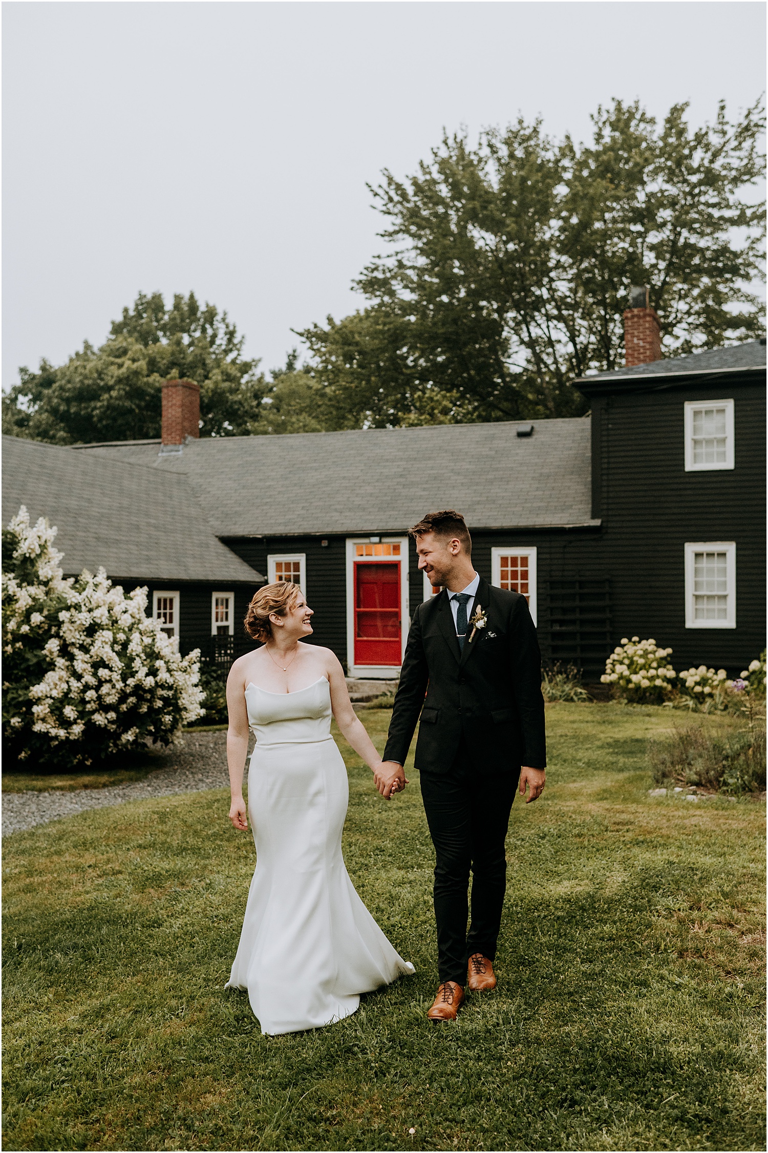 Jordan and James were married on the back lawn under a gorgeous willow tree. The ceremony location had beautiful views of the Squire Tarbox Inn’s 12 acres. The grounds were fully lush and green, which made them the perfect backdrop for pictures. After the ceremony, we set out to take more pictures of the newlyweds. There were so many beautiful spots for photos, and with all of the variety, we didn’t even have to leave the grounds.