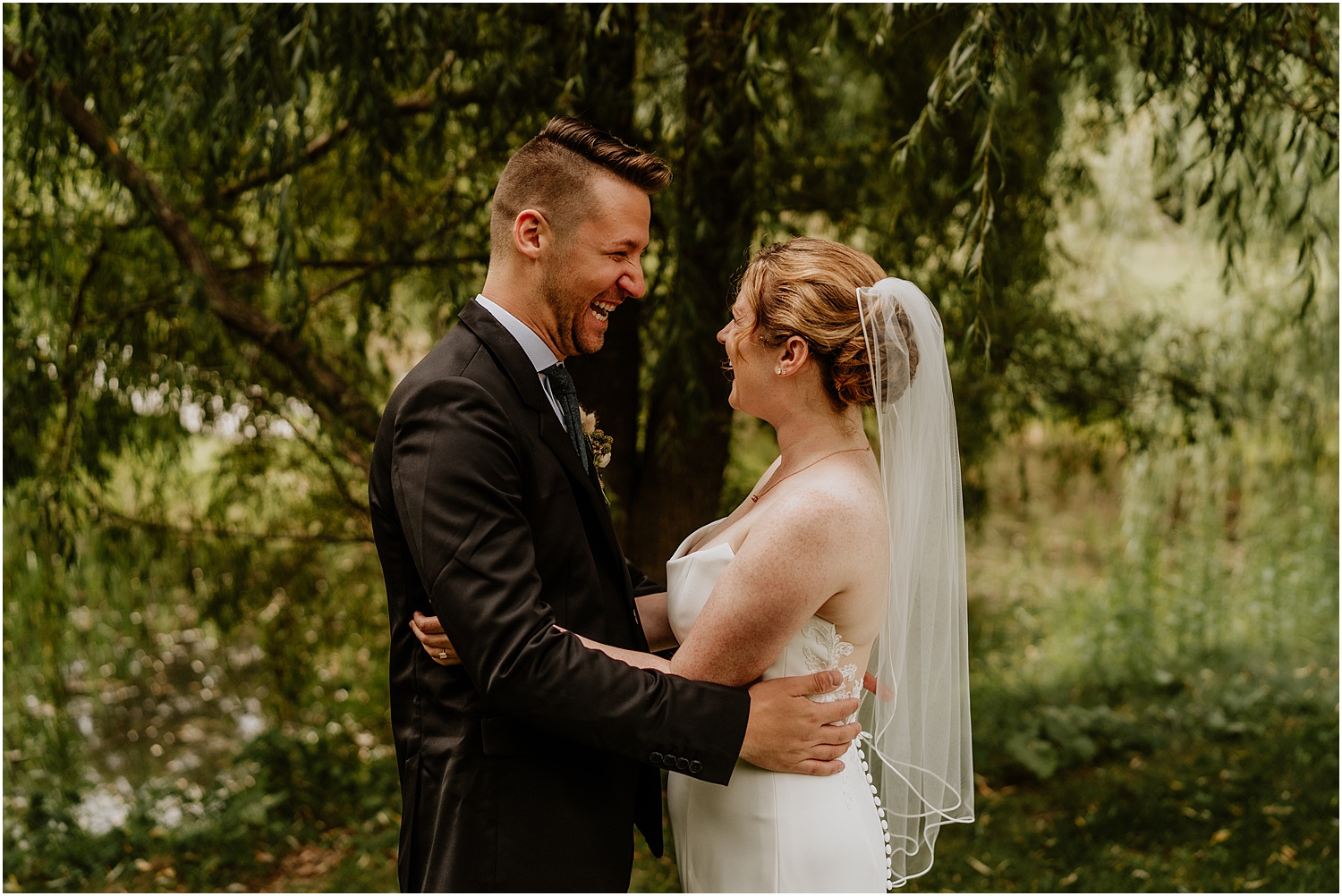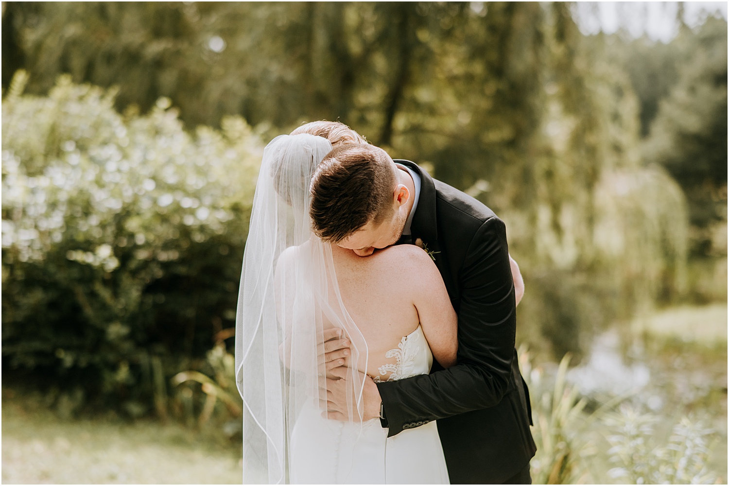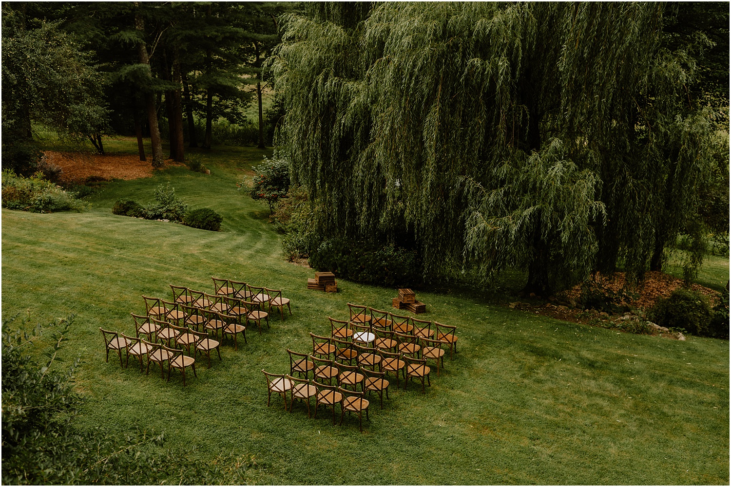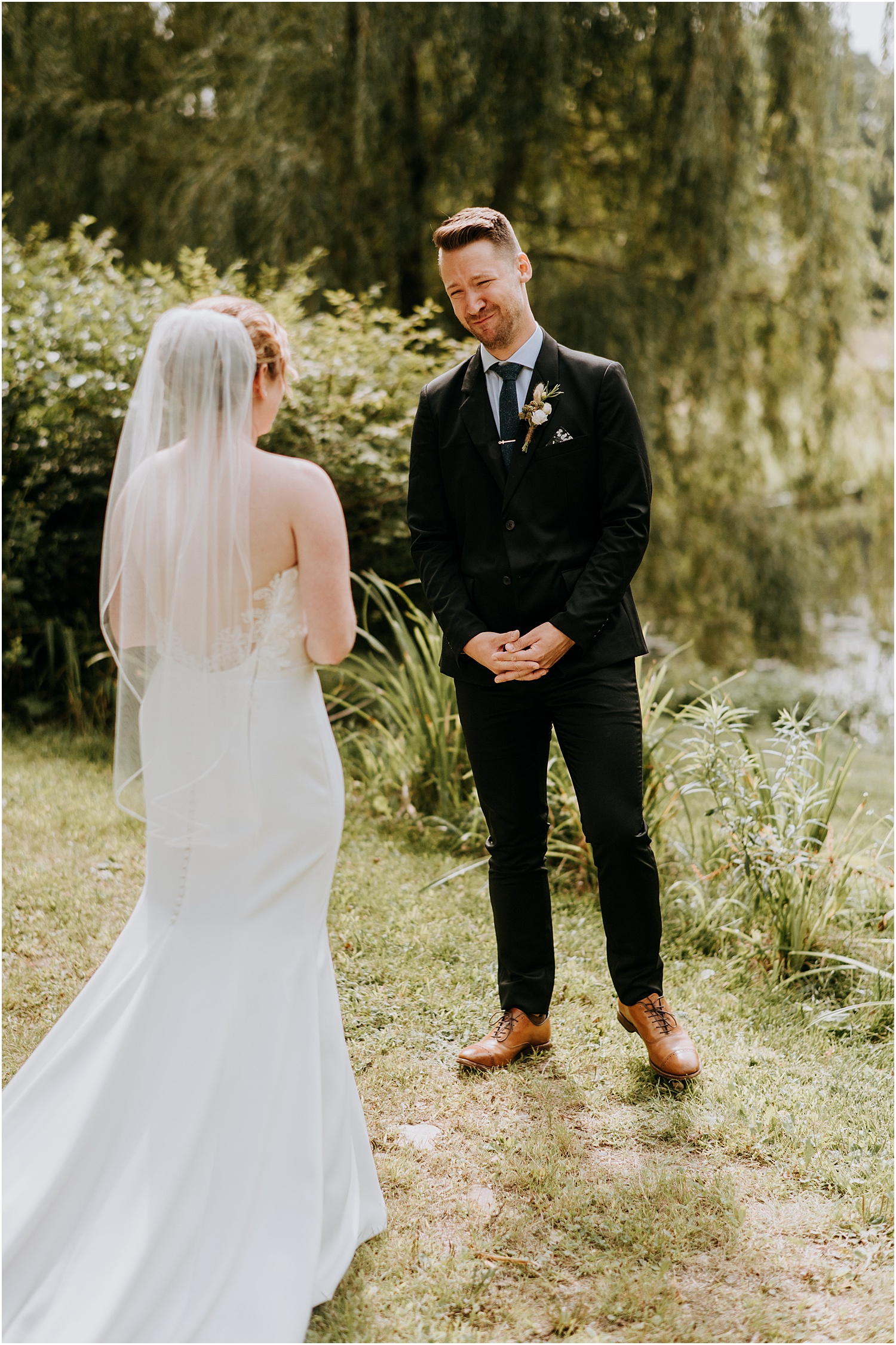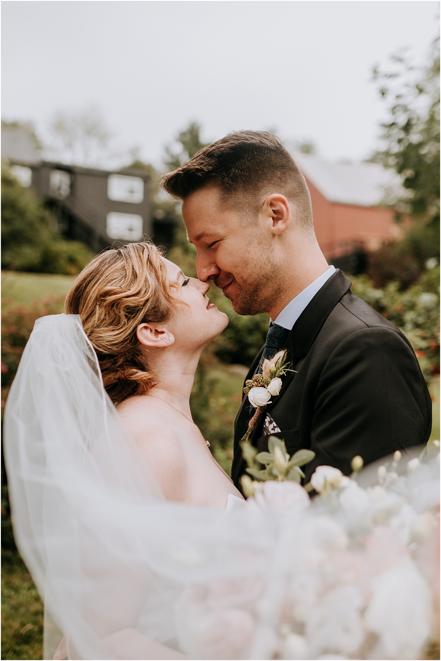Jordan and James were married on the back lawn under a gorgeous willow tree. The ceremony location had beautiful views of the Squire Tarbox Inn’s 12 acres. The grounds were fully lush and green, which made them the perfect backdrop for pictures. After the ceremony, we set out to take more pictures of the newlyweds. There were so many beautiful spots for photos, and with all of the variety, we didn’t even have to leave the grounds.