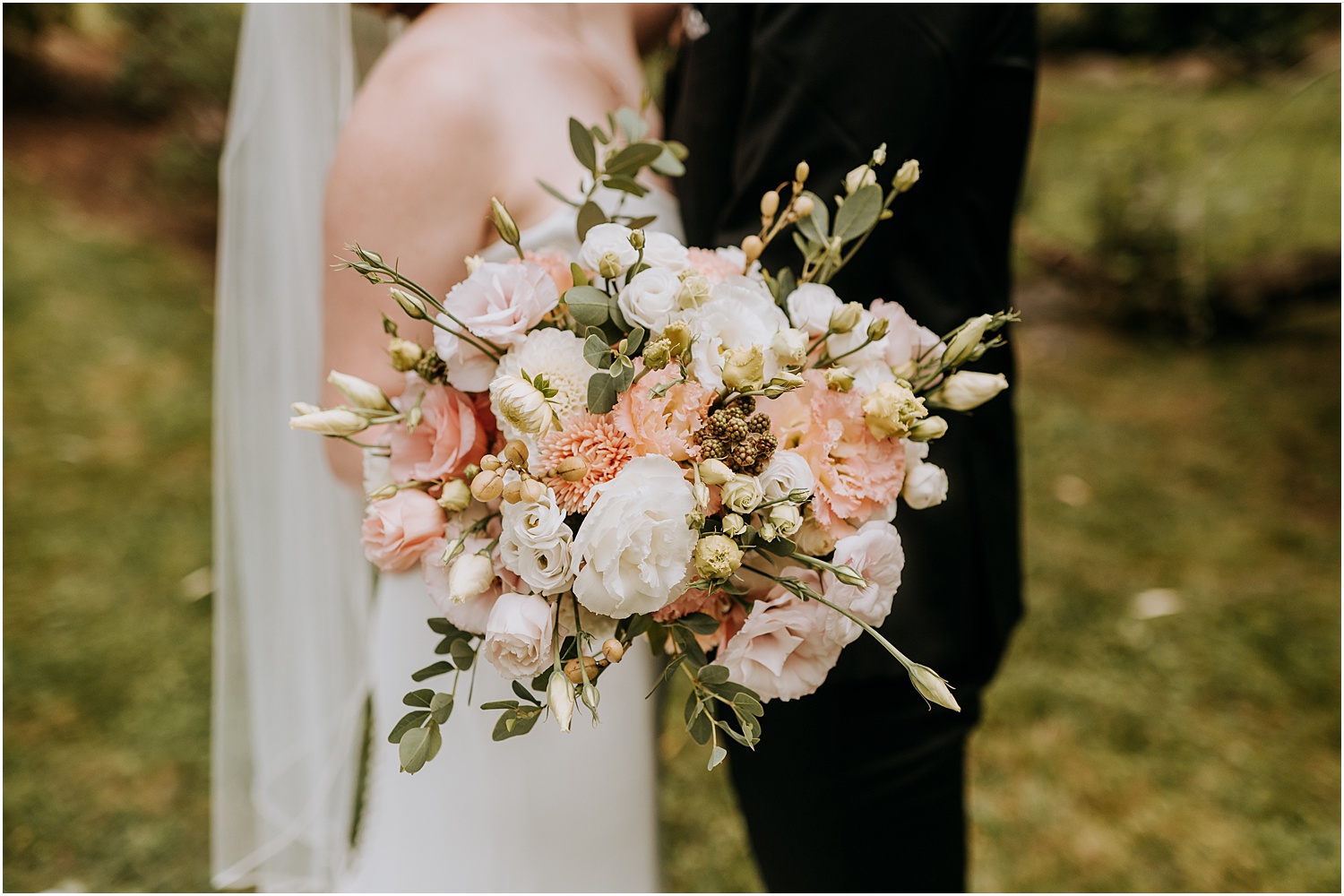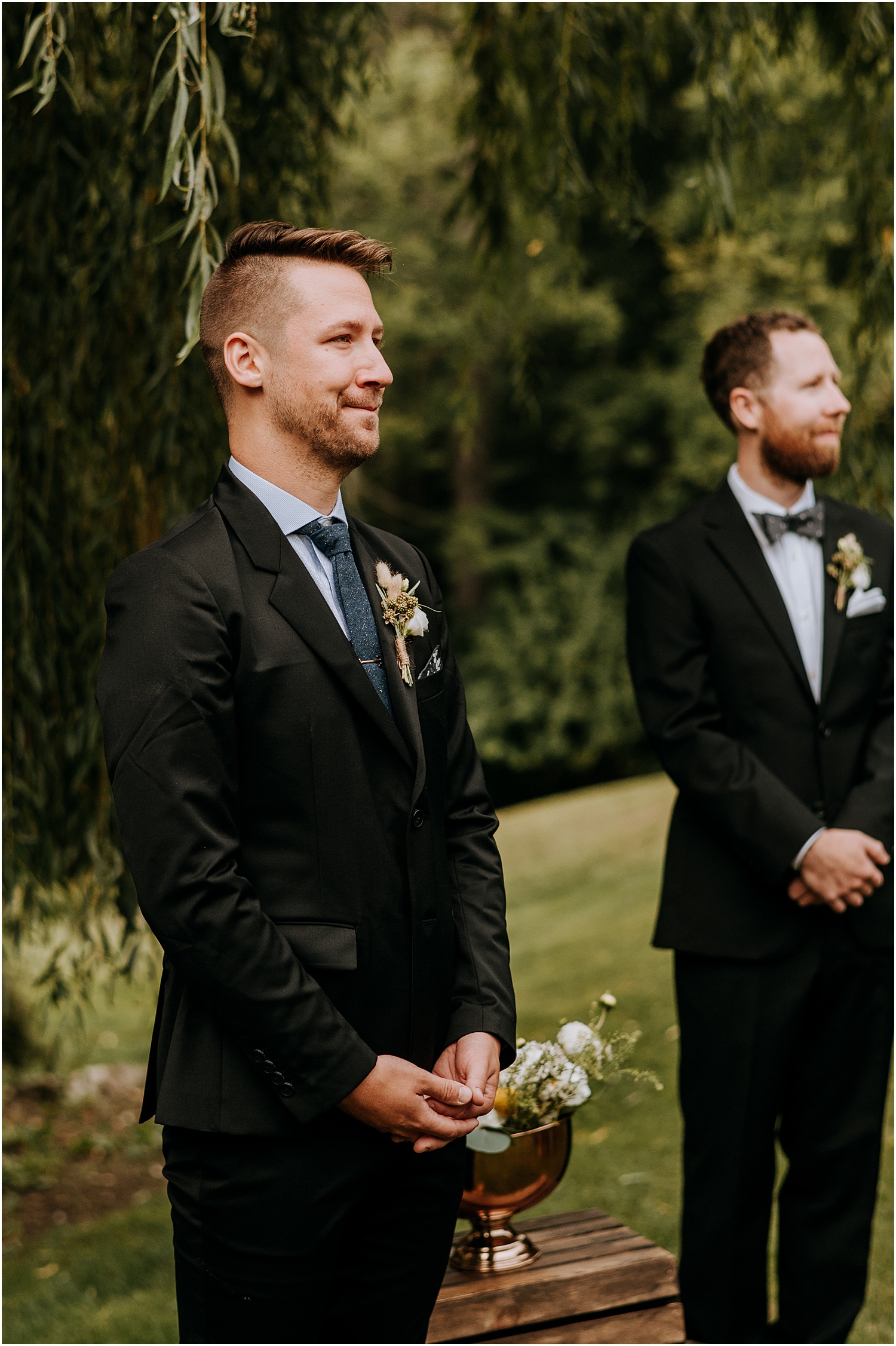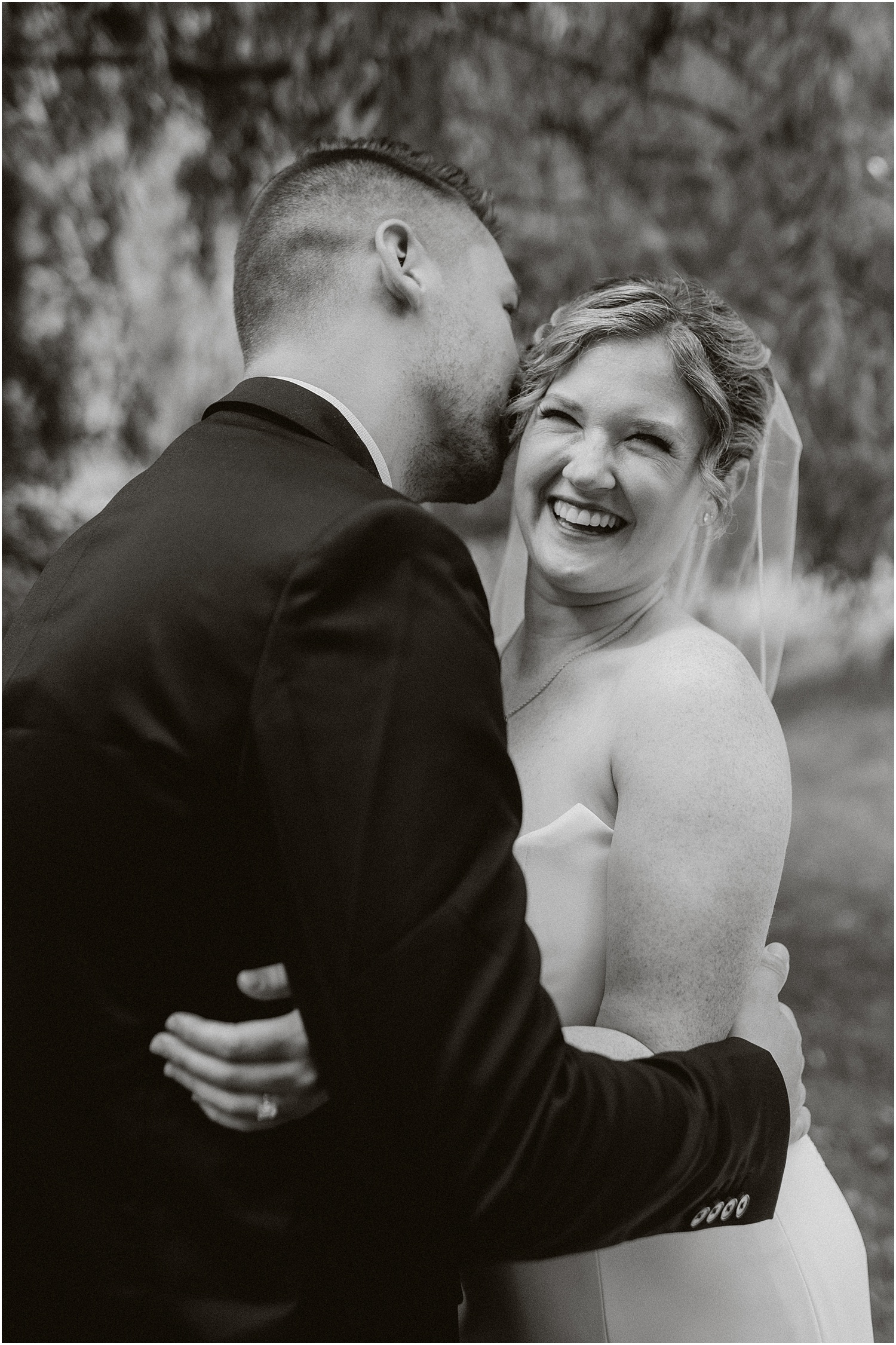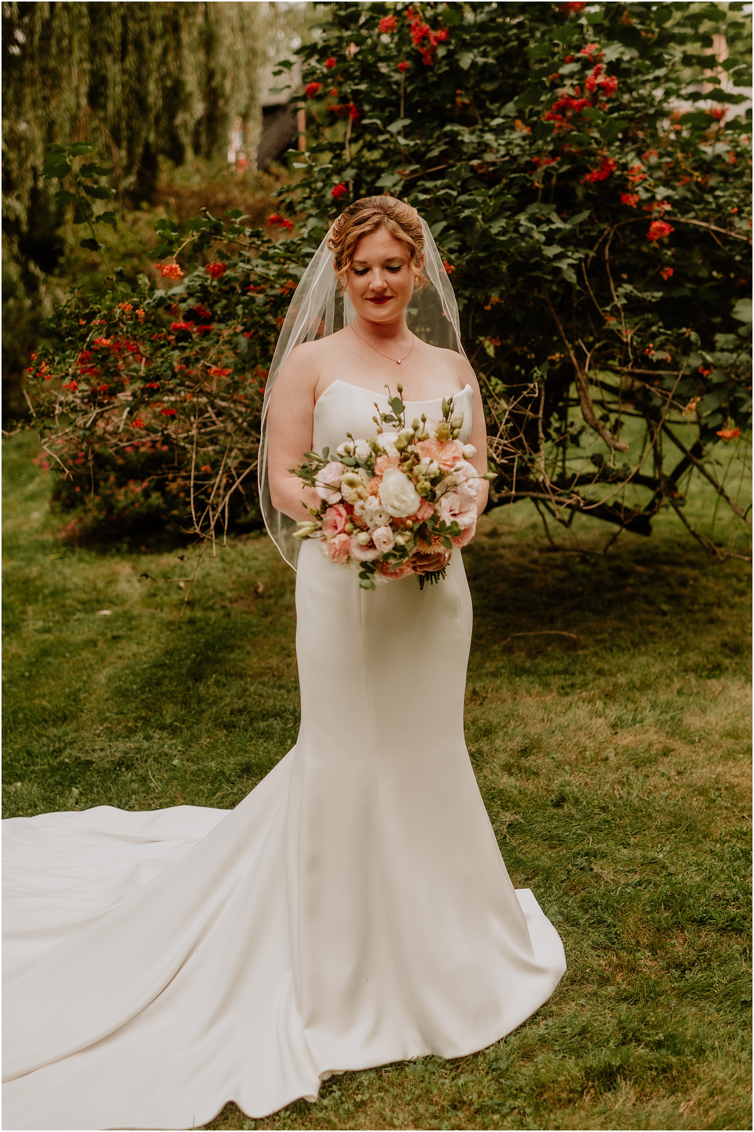 Jordan and James were married on the back lawn under a gorgeous willow tree. The ceremony location had beautiful views of the Squire Tarbox Inn’s 12 acres. The grounds were fully lush and green, which made them the perfect backdrop for pictures. After the ceremony, we set out to take more pictures of the newlyweds. There were so many beautiful spots for photos, and with all of the variety, we didn’t even have to leave the grounds.