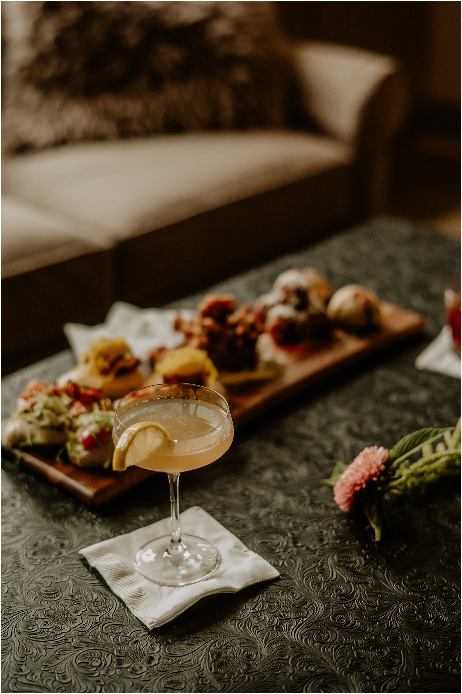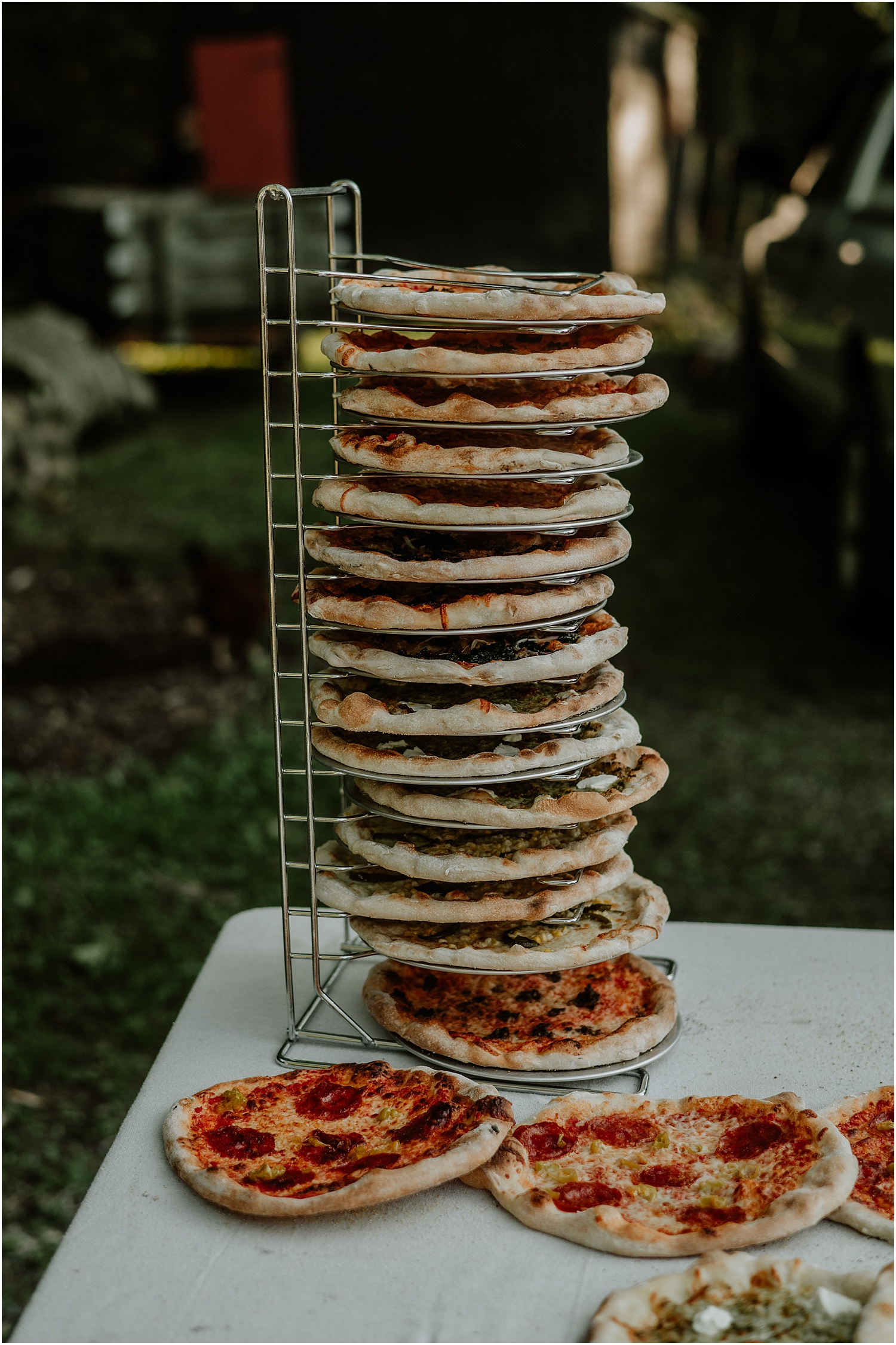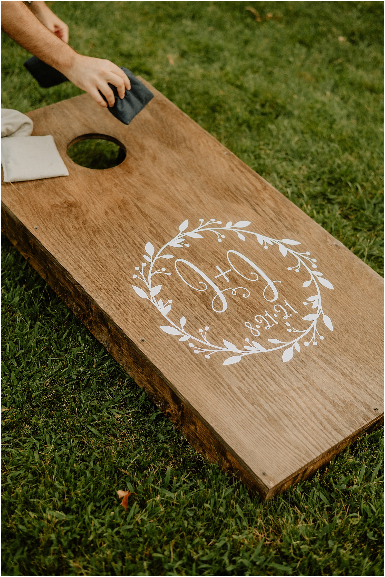 As their guests arrived for the weekend on Friday, they had a rehearsal dinner set up with homemade pizzas from The Uproot Pie Co. They were prepared and cooked right there onsite, which created a personalized and casual atmosphere. After dinner, the guests then enjoyed the firepit and a few games of corn hole that were set up on the back lawn.